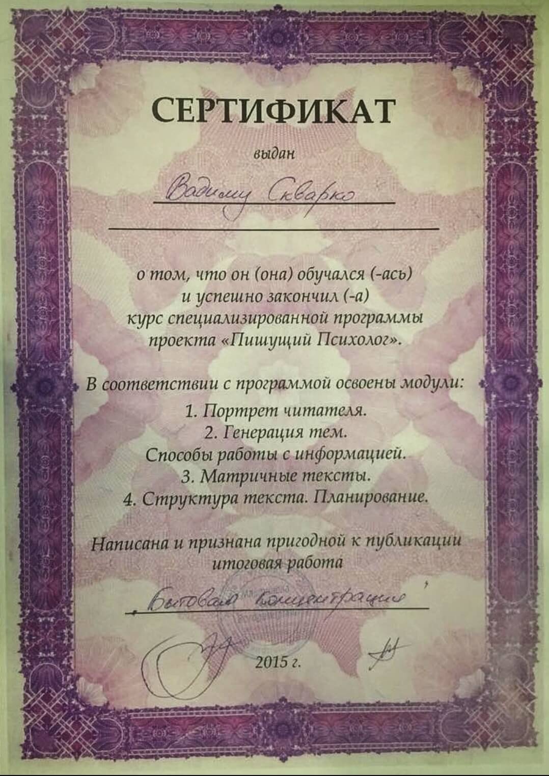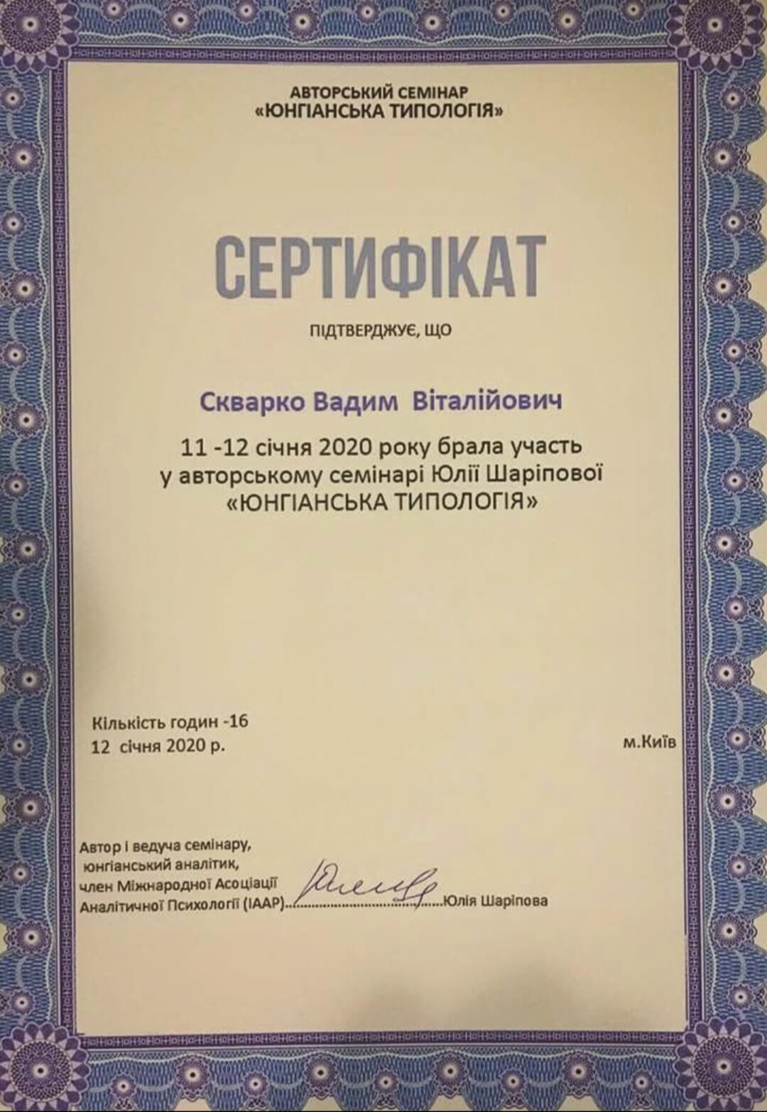 Сертифікати: