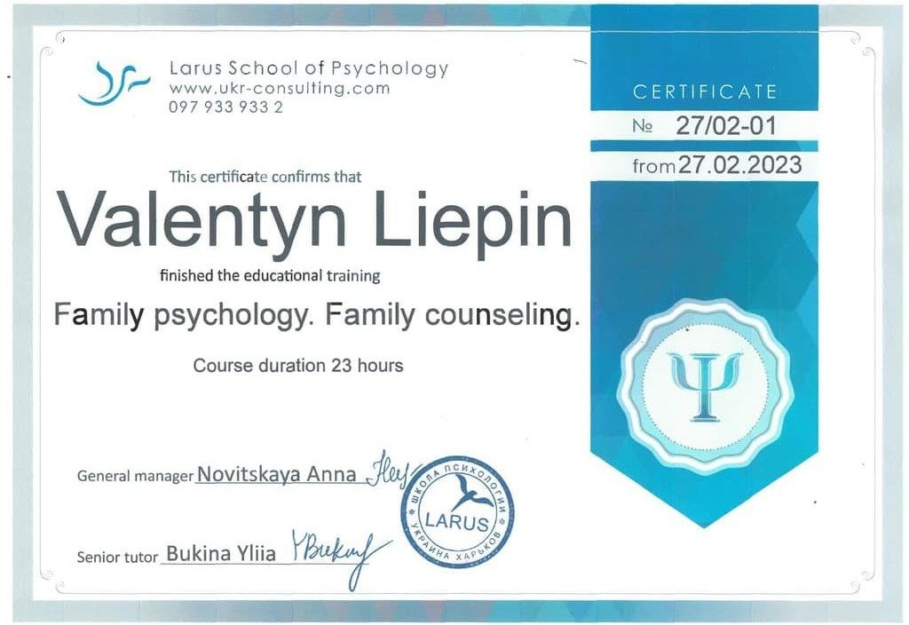 розв'язання проблем у стосунках: професійна підтримка у пошуку шляхів до подолання конфліктів, пов'язаних із вихованням дітей, фінансами, цінностями, плануванням майбутнього та невдоволенням сексуальним життям. Визначення спільного погляду на проблему допомагає гармонізувати стосунки;