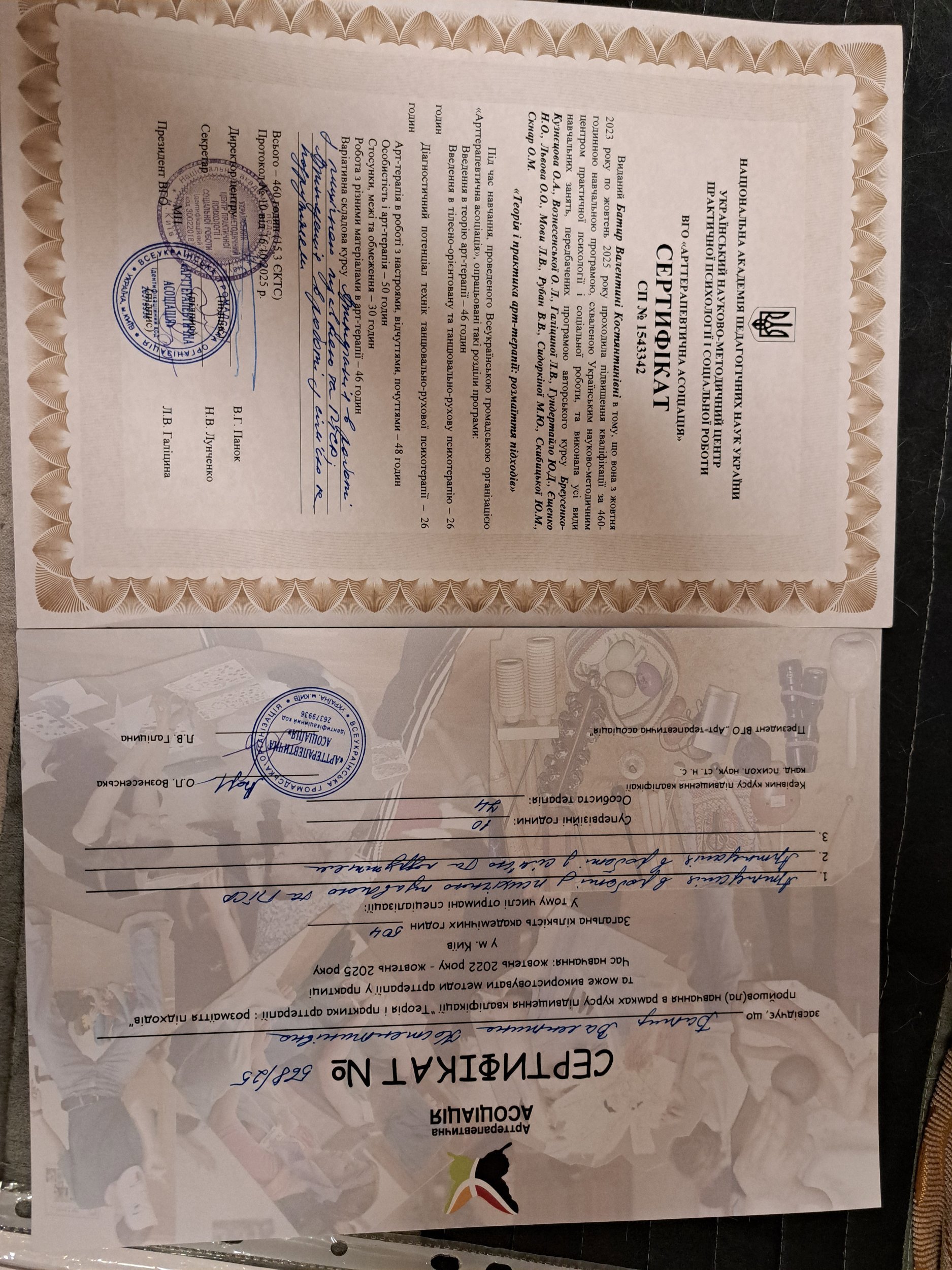 НАЦІОНАЛЬНА АКАДЕМІЯ ПЕДАГОГІЧНИХ НАУК УКРАЇНИ, УКРАЇНСЬКИЙ НАУКОВО-МЕТОДИЧНИЙ ЦЕНТР ПРАКТИЧНОЇ ПСИХОЛОГІЇ І СОЦІАЛЬНОЇ РОБОТИ, ВГО «АРТТЕРАПЕВТИЧНА АСОЦІАЦІЯ»