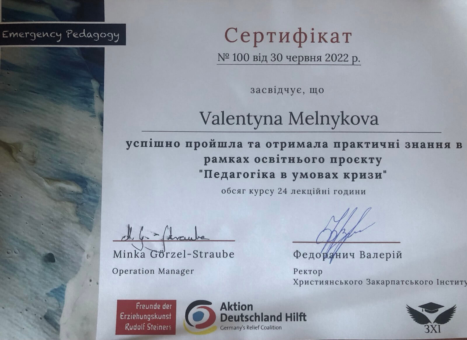 7. "Трвмапедагогіка в кризових умовах" м.Хуст, Мартін Штраубе, 2022 / 40год, сертифікована