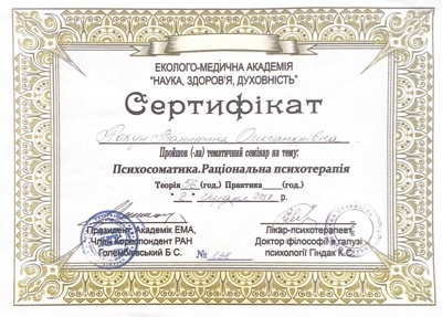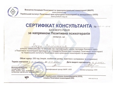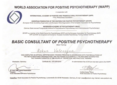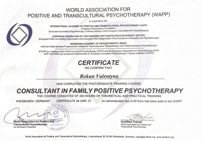 Сертифікати з сімейної позитивної психотерапії