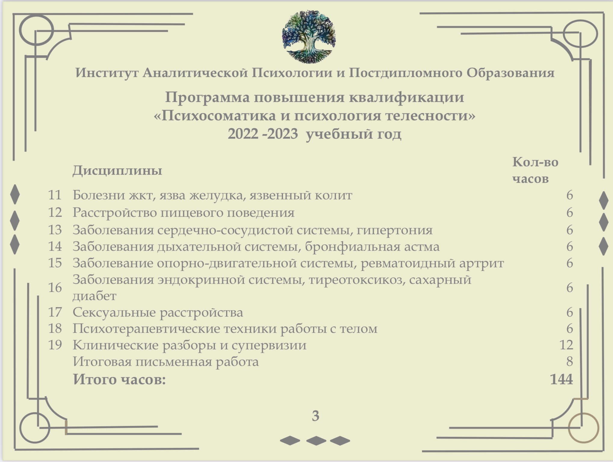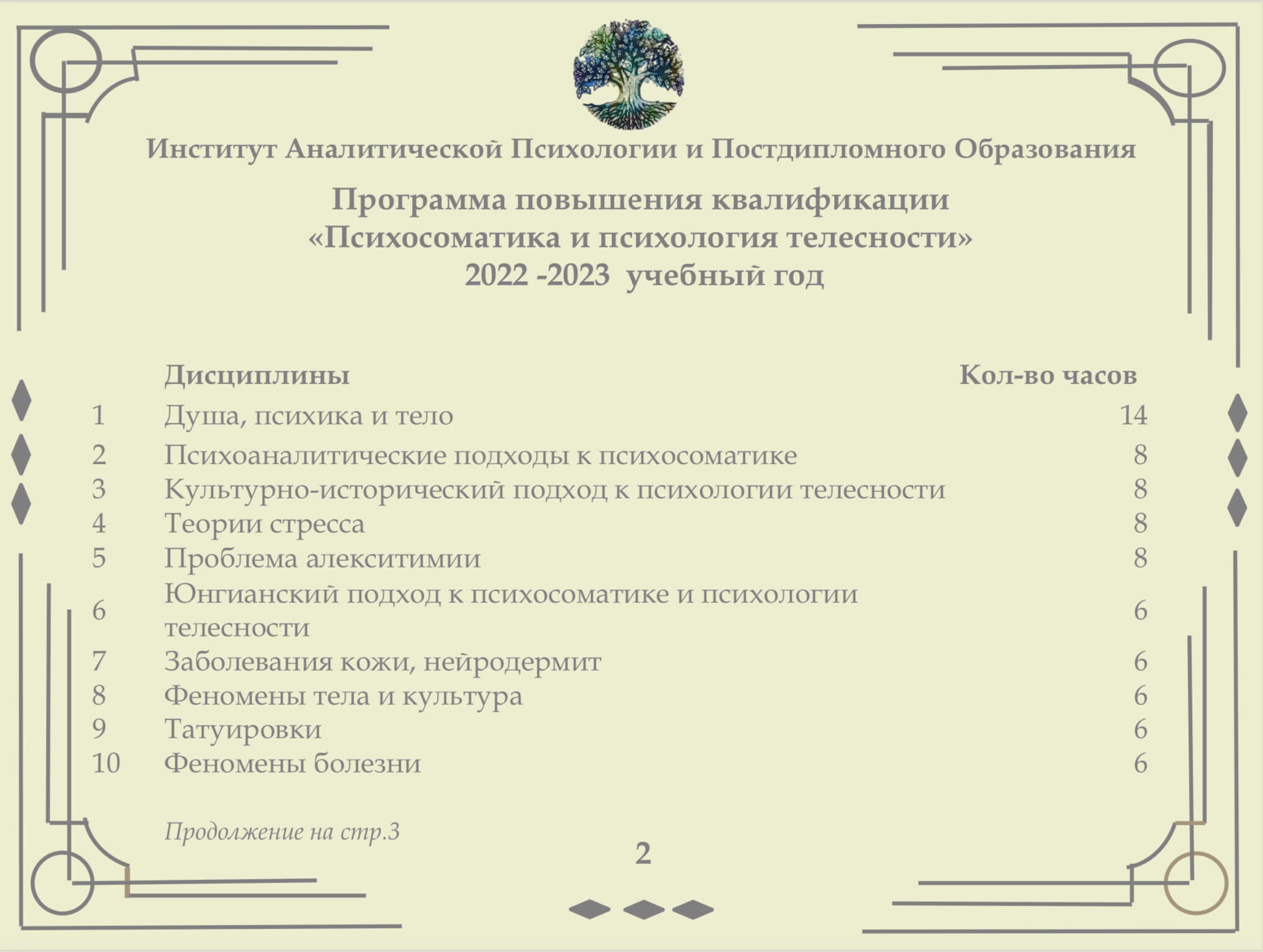 Программа повышения квалификации «Психосоматика и психология телесности»