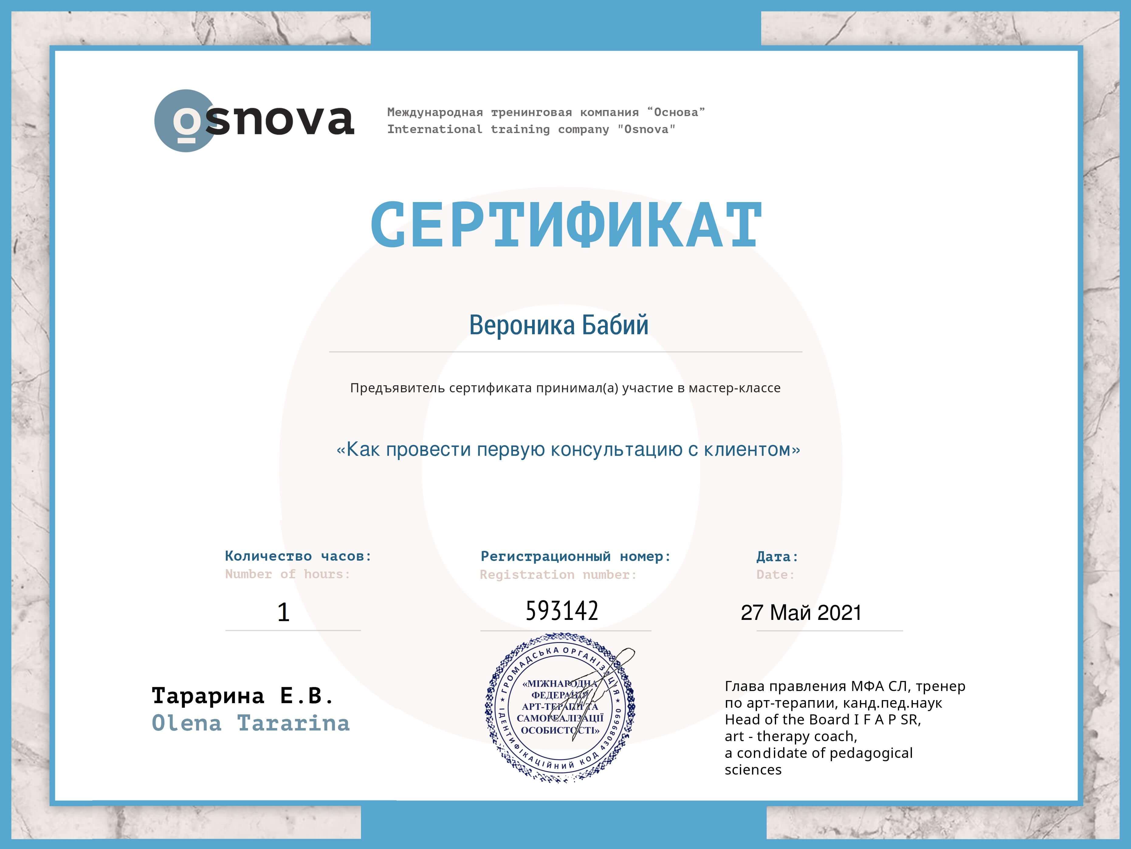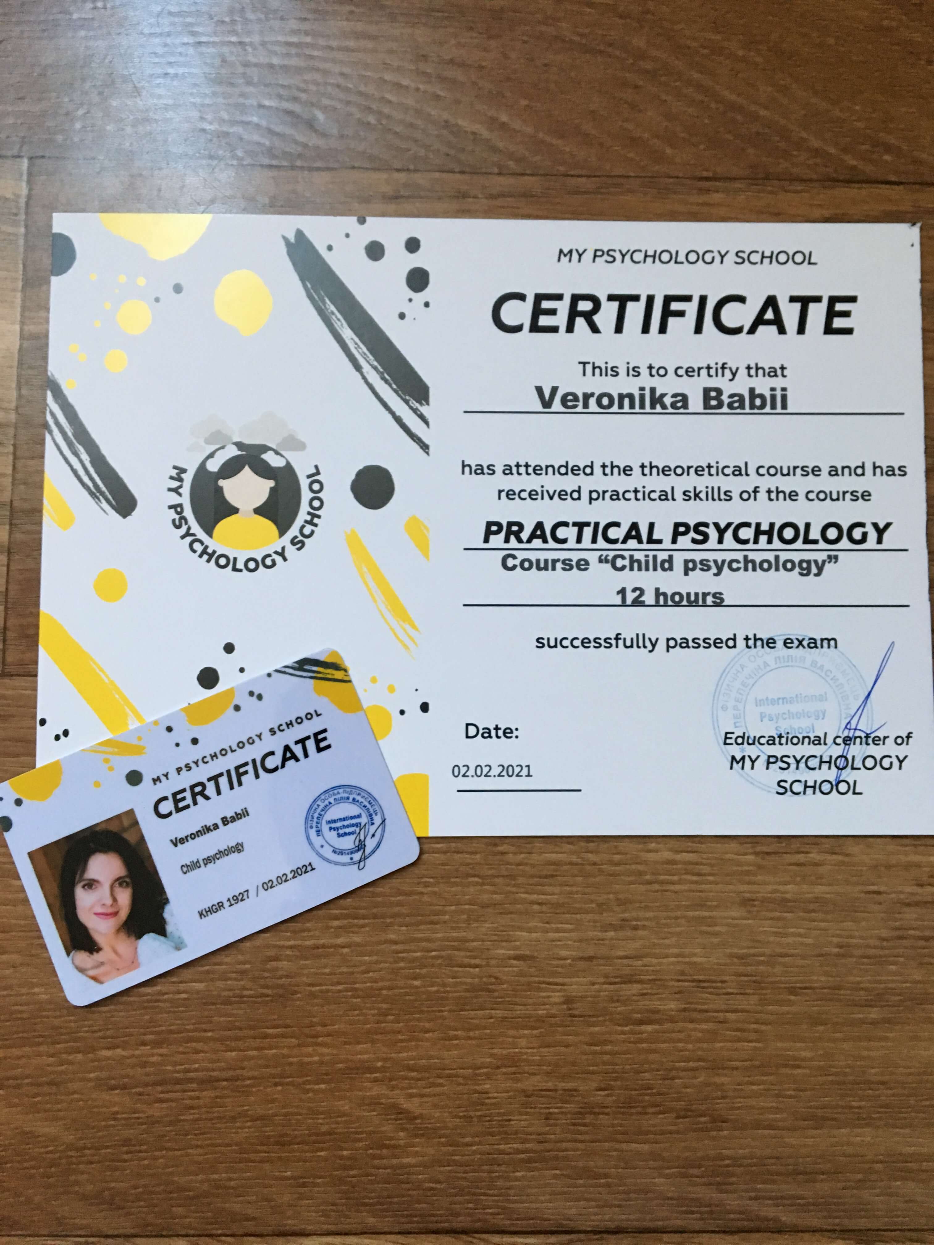 Маю вищу психологічну освіту та постійно підвищую рівень знань та кваліфікації, відвідую конференції та семінари з психології та педагогіки.