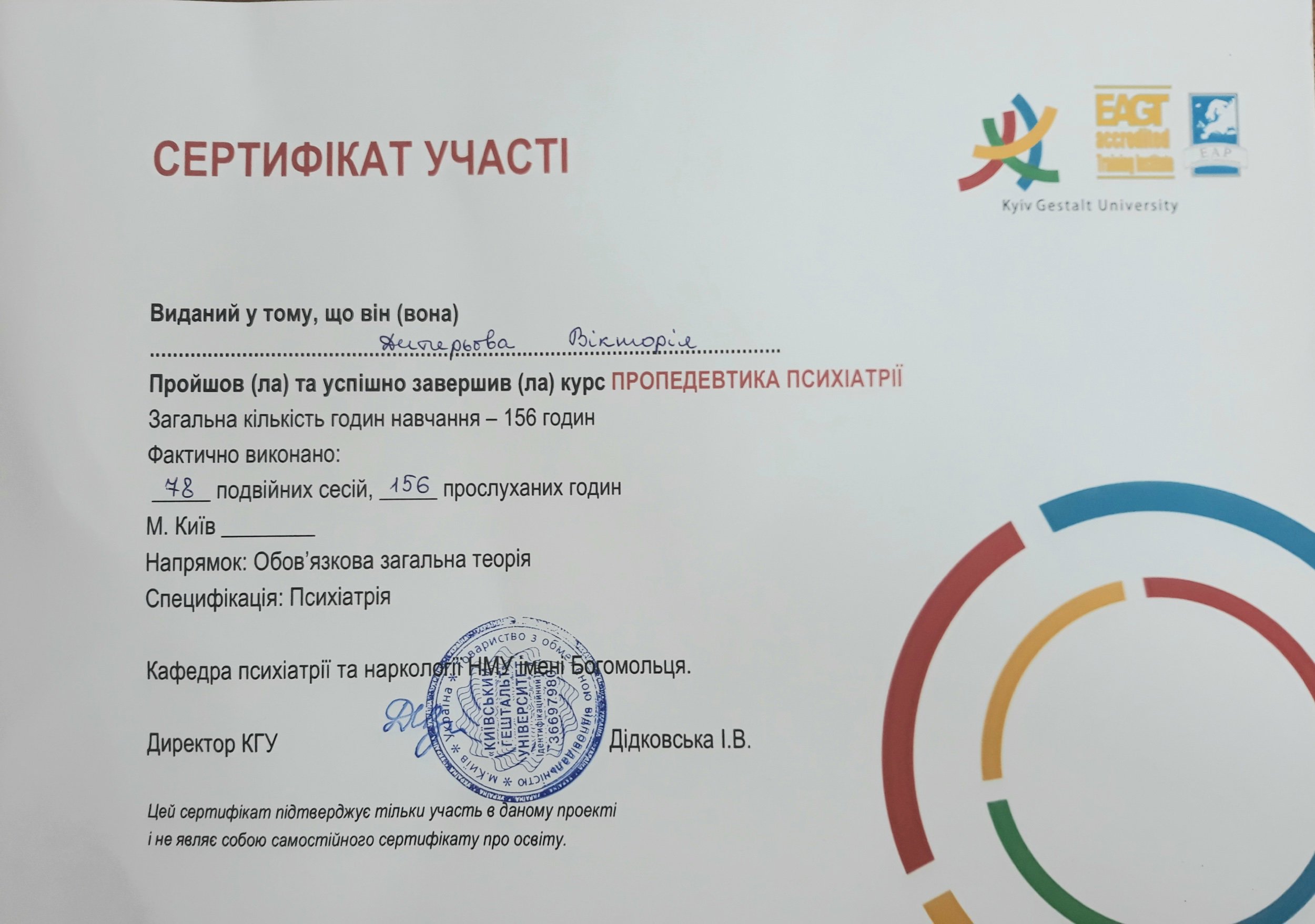 Київський гештальт університет - гештальт-терапія 2 ступінь ( 2019-2024)