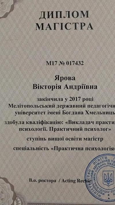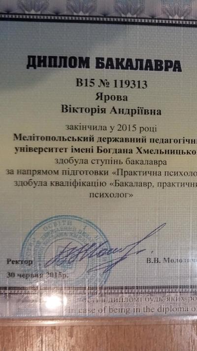 Мелітопольський державний педагогічний університет імені Богдана Хмельницького.Здобула кваліфікацію