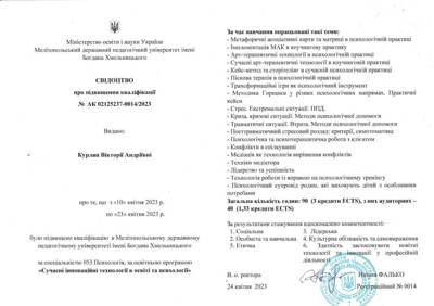 Сертефікат "Арт - терапія з дітьми та дорослими" 130 акад.год