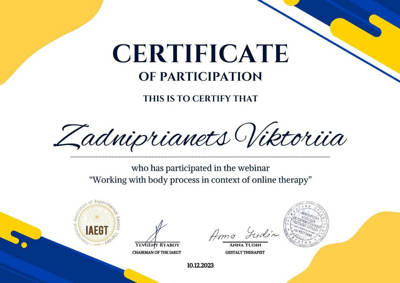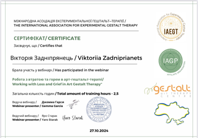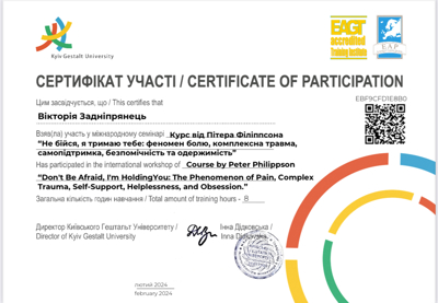 ,,Гештальт-коучінг‘‘ ,,Робота з психосоматикою у гештальт-терапііʼʼ