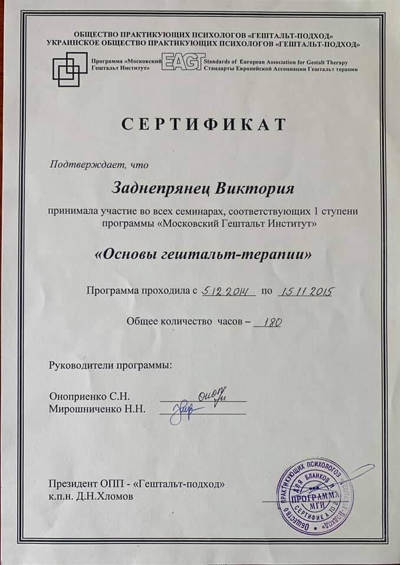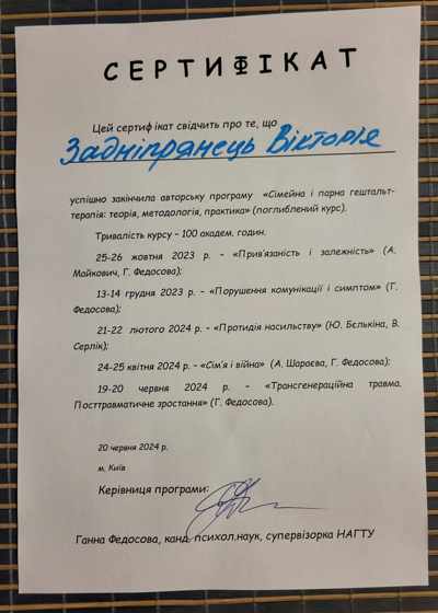2 ступінь гештальт-терапія НАГТУ