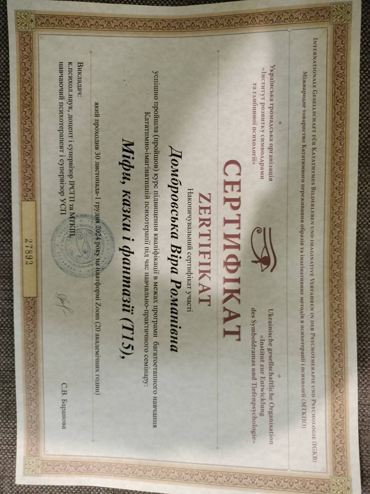 Сертифікати: