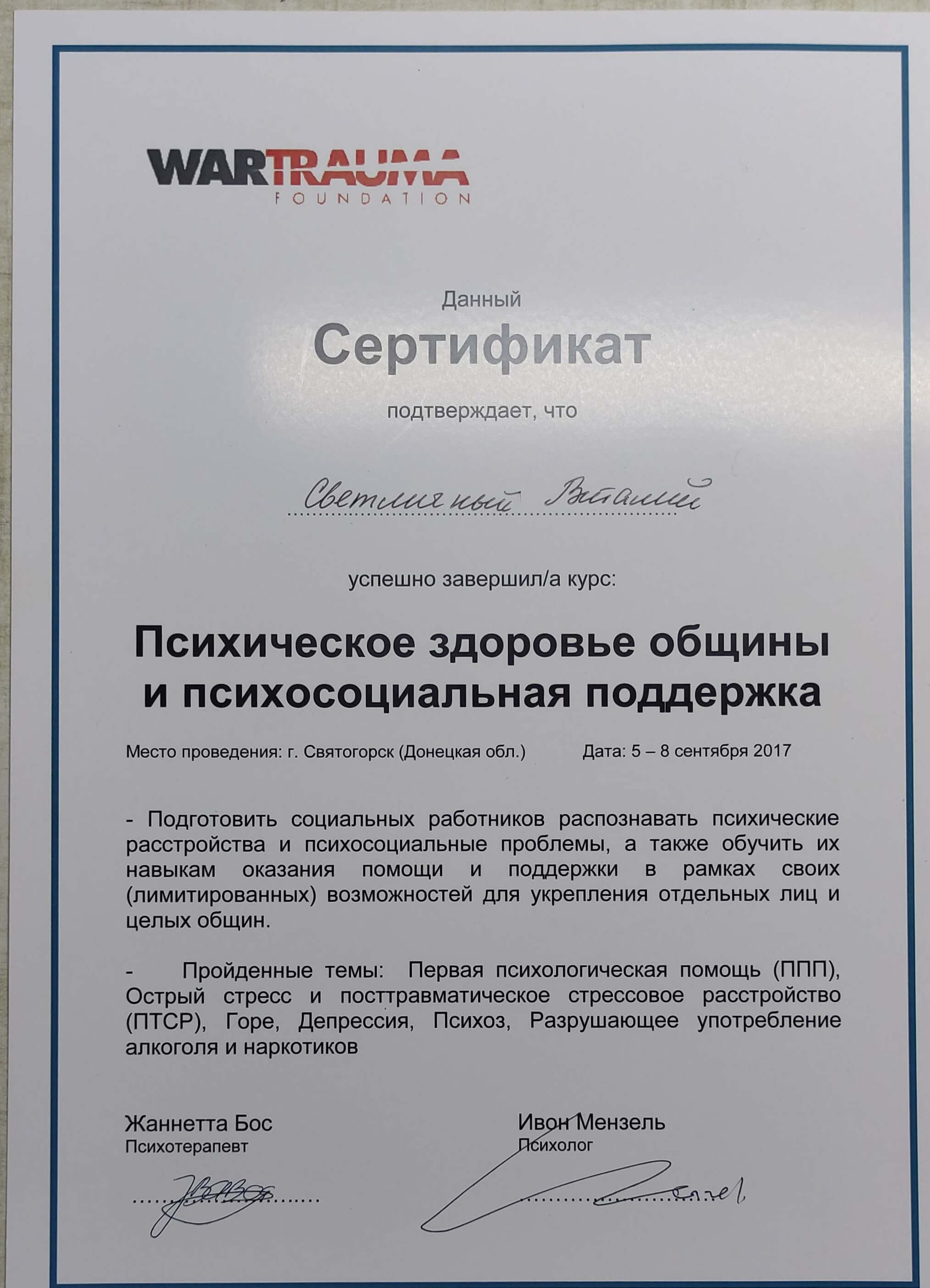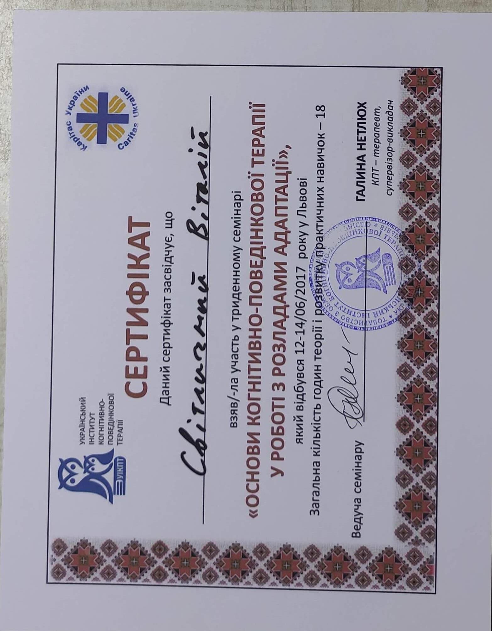 Надійний, регулярно підвищую свій професійний рівень, працюю із психоматикою, психотравмами. Уважний до клієнтів.