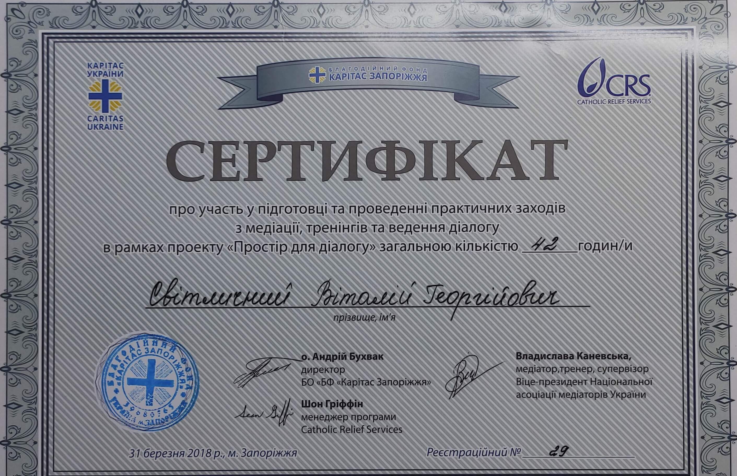 підготовці та проведенні практичних заходів з медіації, тренінгів та ведення діалогу в рамках проекту «Простір для діалогу»