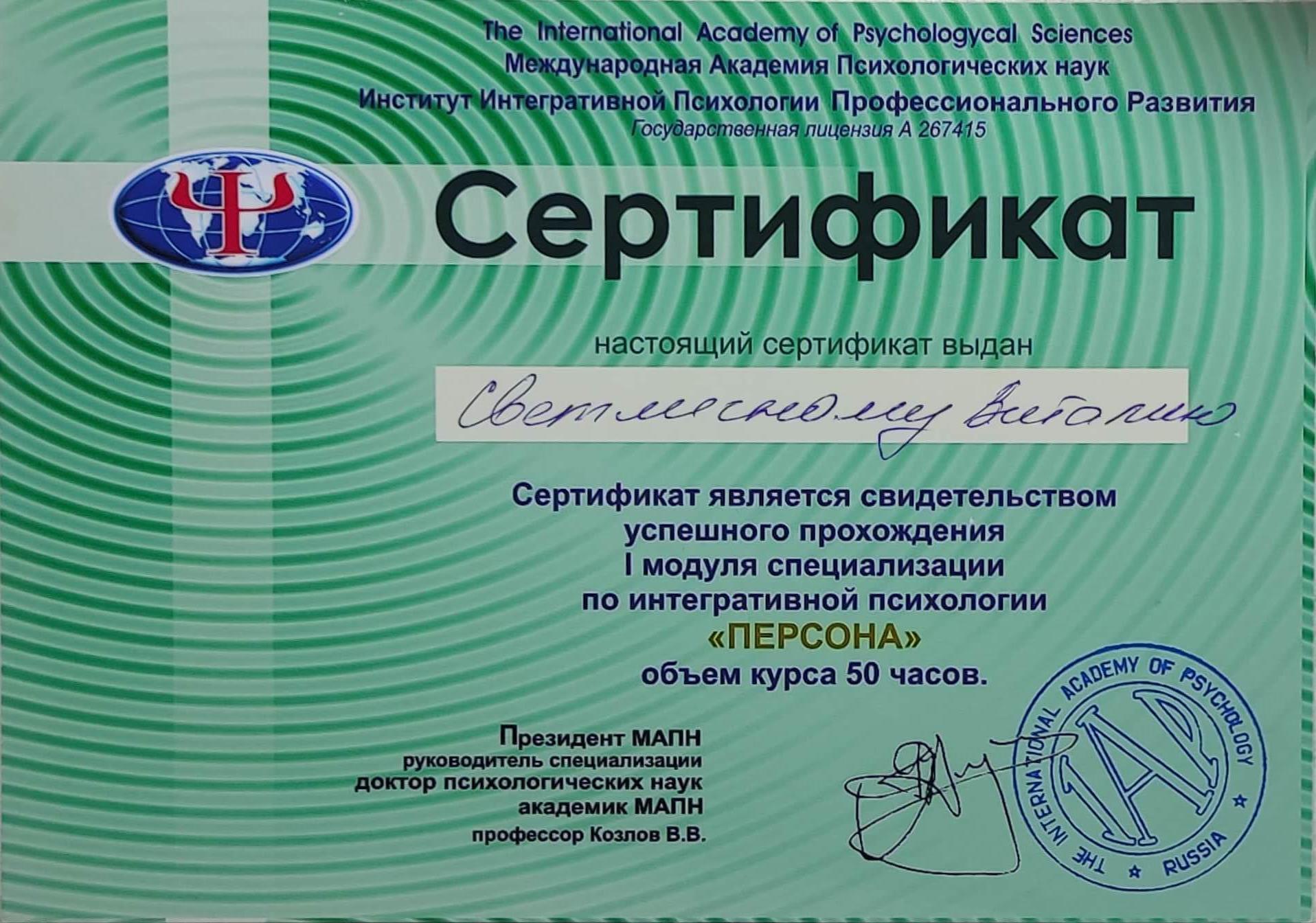 І модуль специализации по интегративной психологии «ПЕРСОНА»