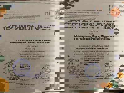 Крім диплома державного зразка за спеціальністю «Психологія», я отримала сертифікати щодо підвищення кваліфікації міжнародного значення у довгострокових програмах з Аналітичної психології.