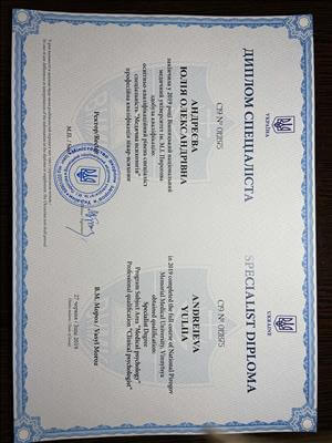 Вінницький Національний медичний університет. Спеціальність – медична психологія. Інтернатура-ВОПНБ ім.акад. Ющенко