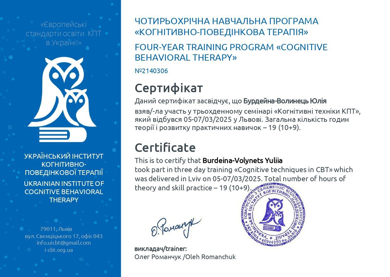 У своєму підході поєдную структуру і глибину: допомагаю зрозуміти свої реакції, змінити дезадаптивні думки та навчитися справлятися з емоціями без виснаження. Вірю, що зміни можливі тоді, коли є не лише техніки, а й контакт, безпека і чесність у процесі.