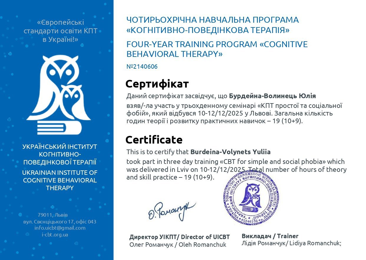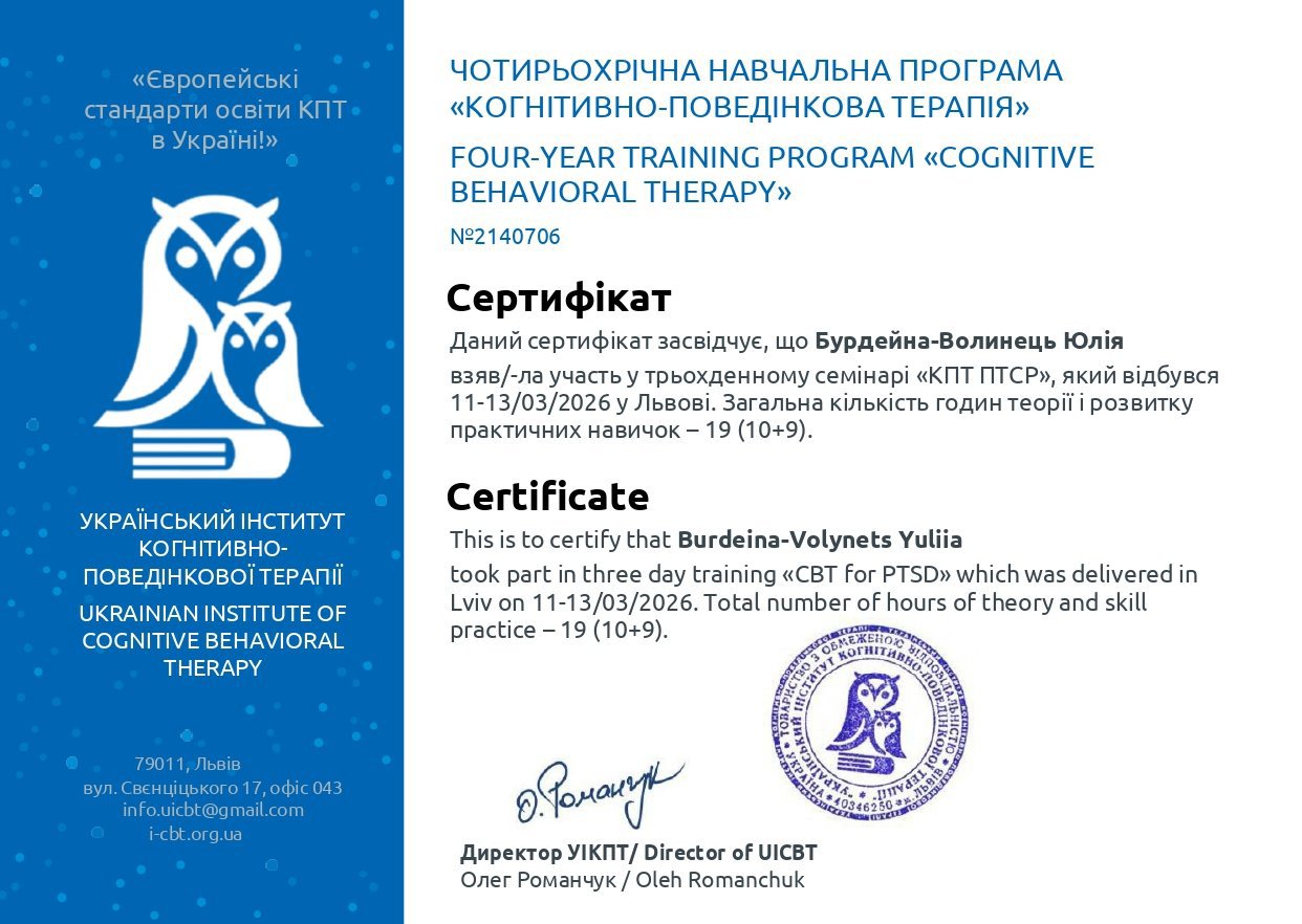 Я психолог, який поєднує професійну чіткість і живу людяність у роботі. Для мене важливо не просто “прибрати симптом”, а зрозуміти, через що проходить людина, і допомогти їй відновити внутрішню опору.