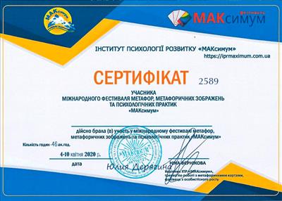 Участь у конференціях, практичних інтенсивах, майстер-класах, супервізорські групи, тематичних семінарах.