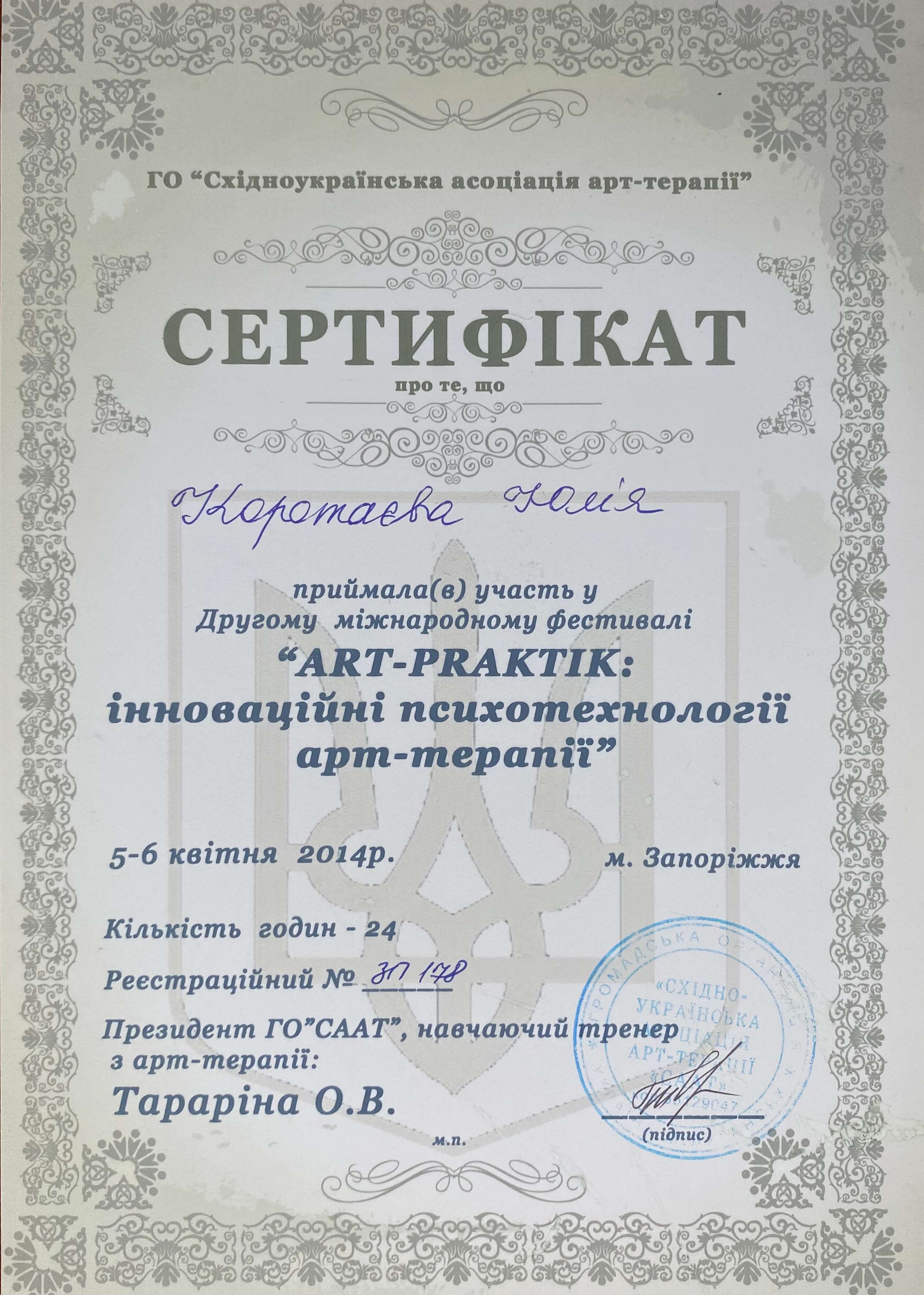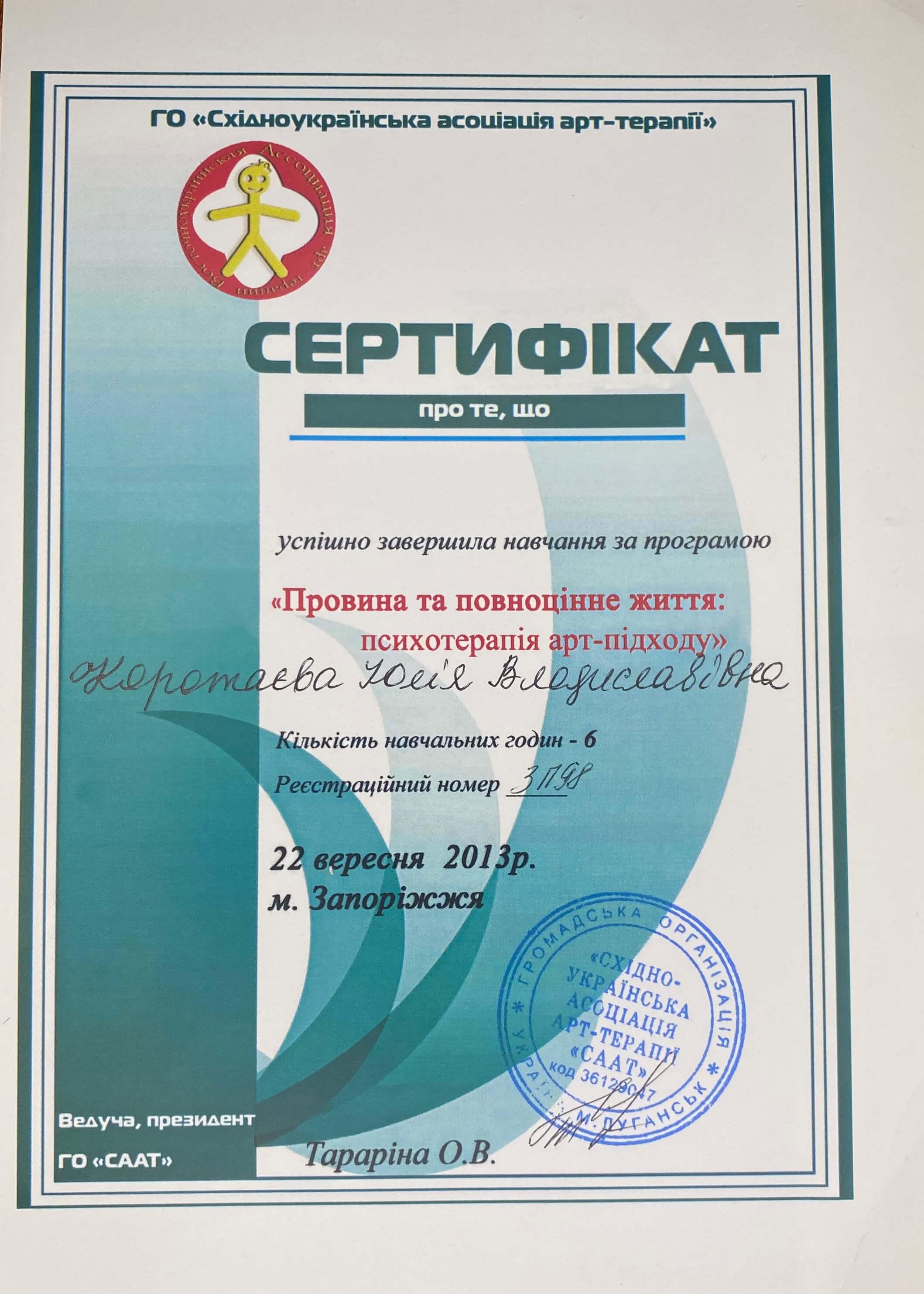 ОО «ВОСТОЧНОУКРАИНСКАЯ АССОЦИАЦИЯ АРТ-ТЕРАПИИ»