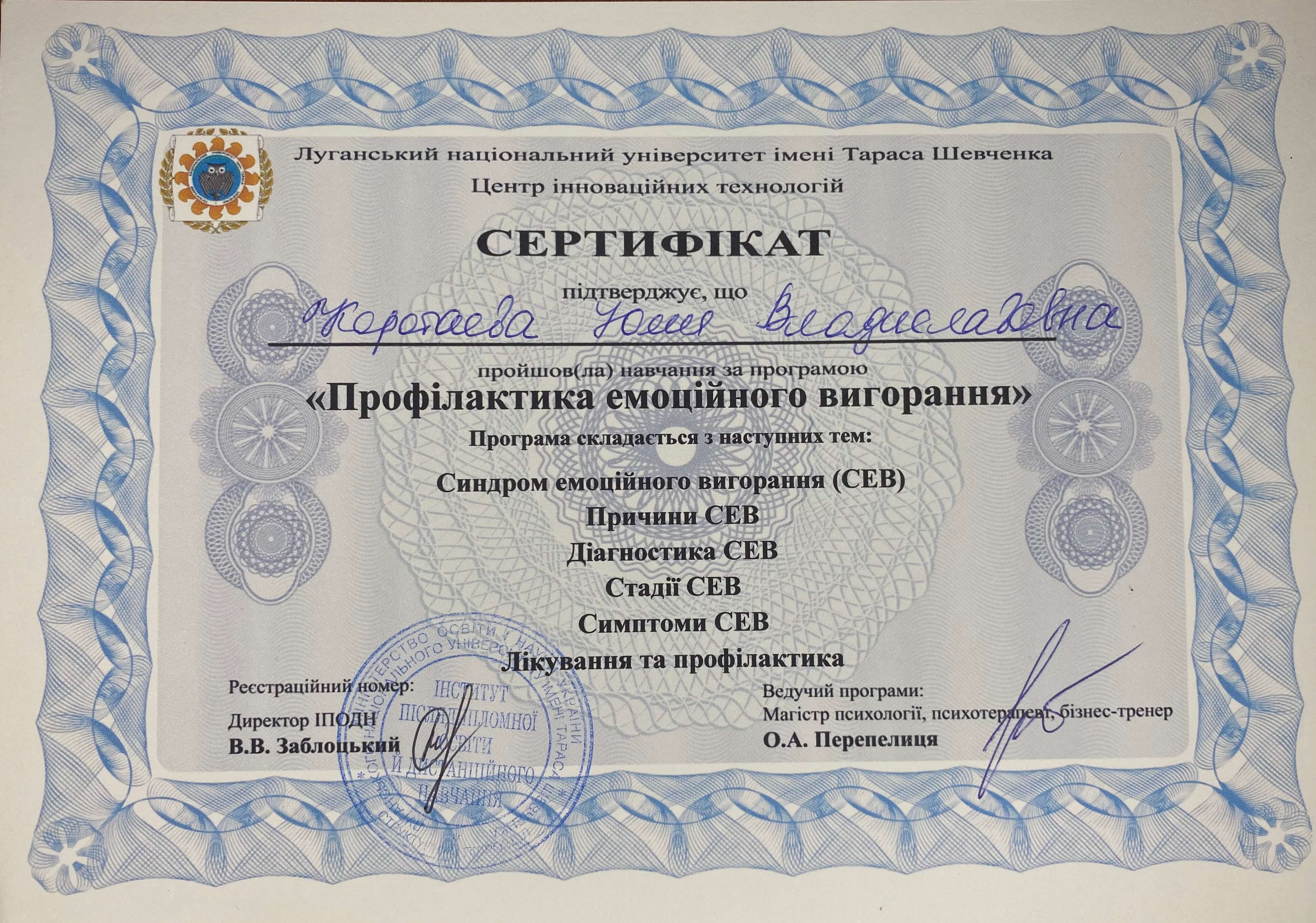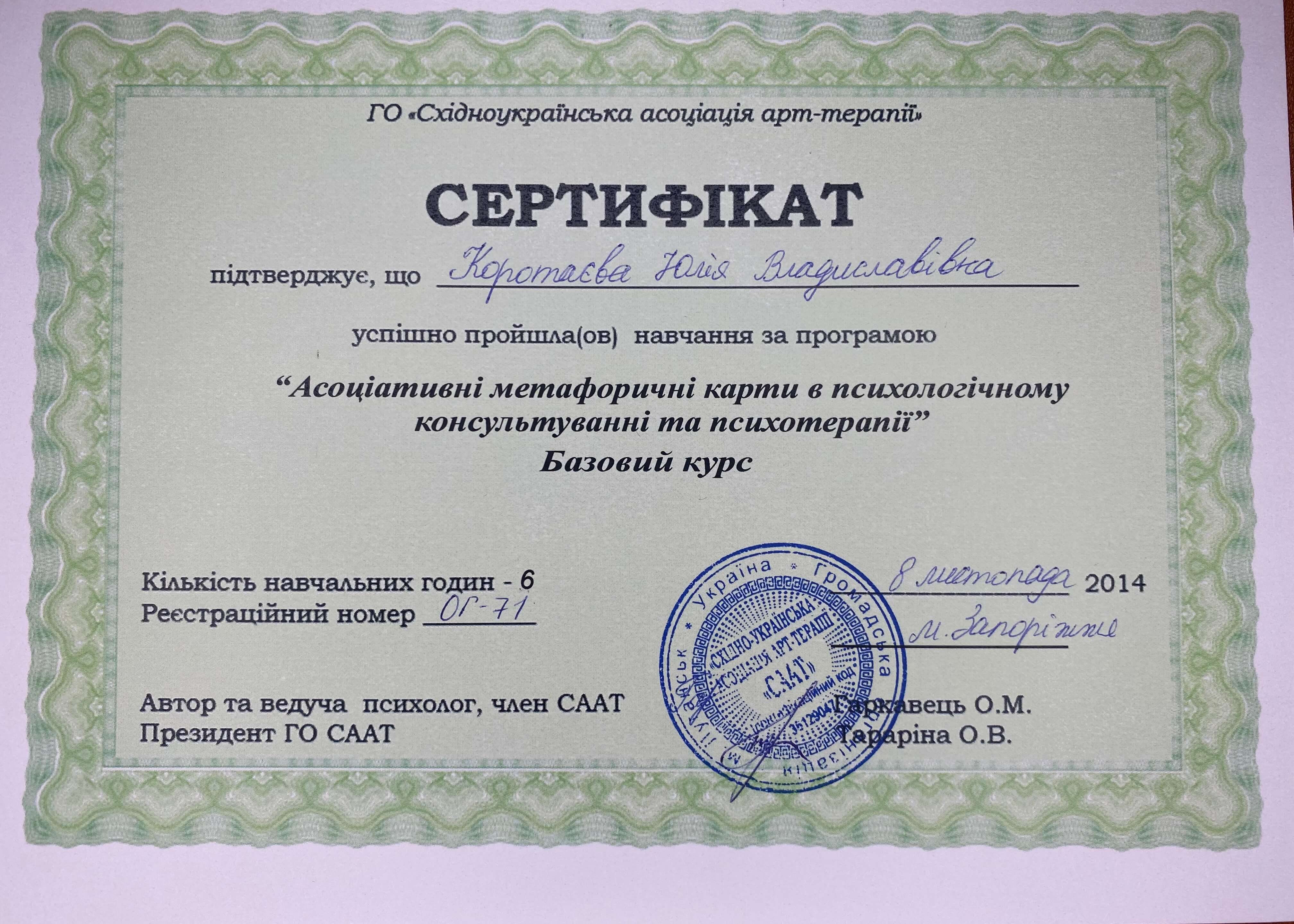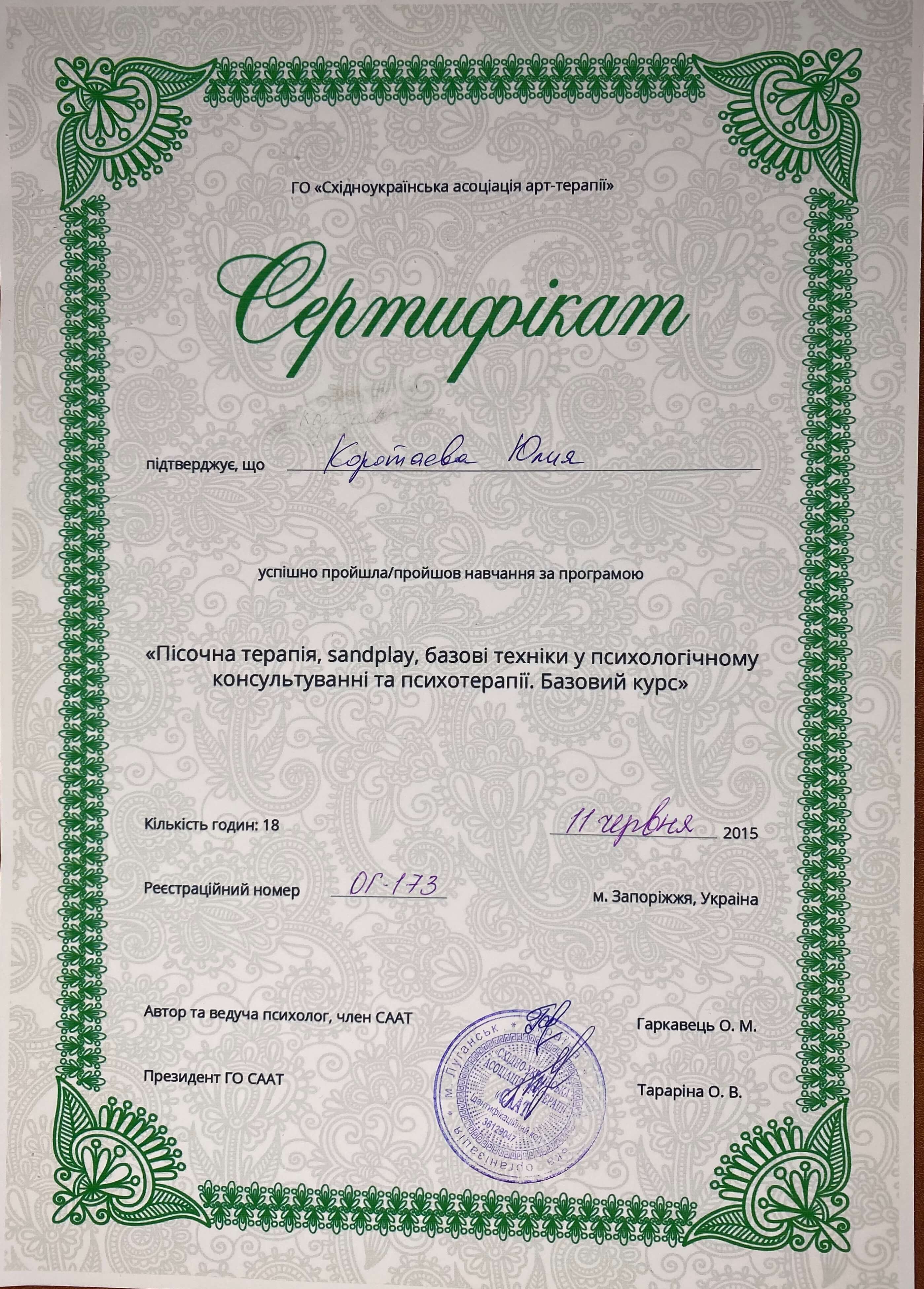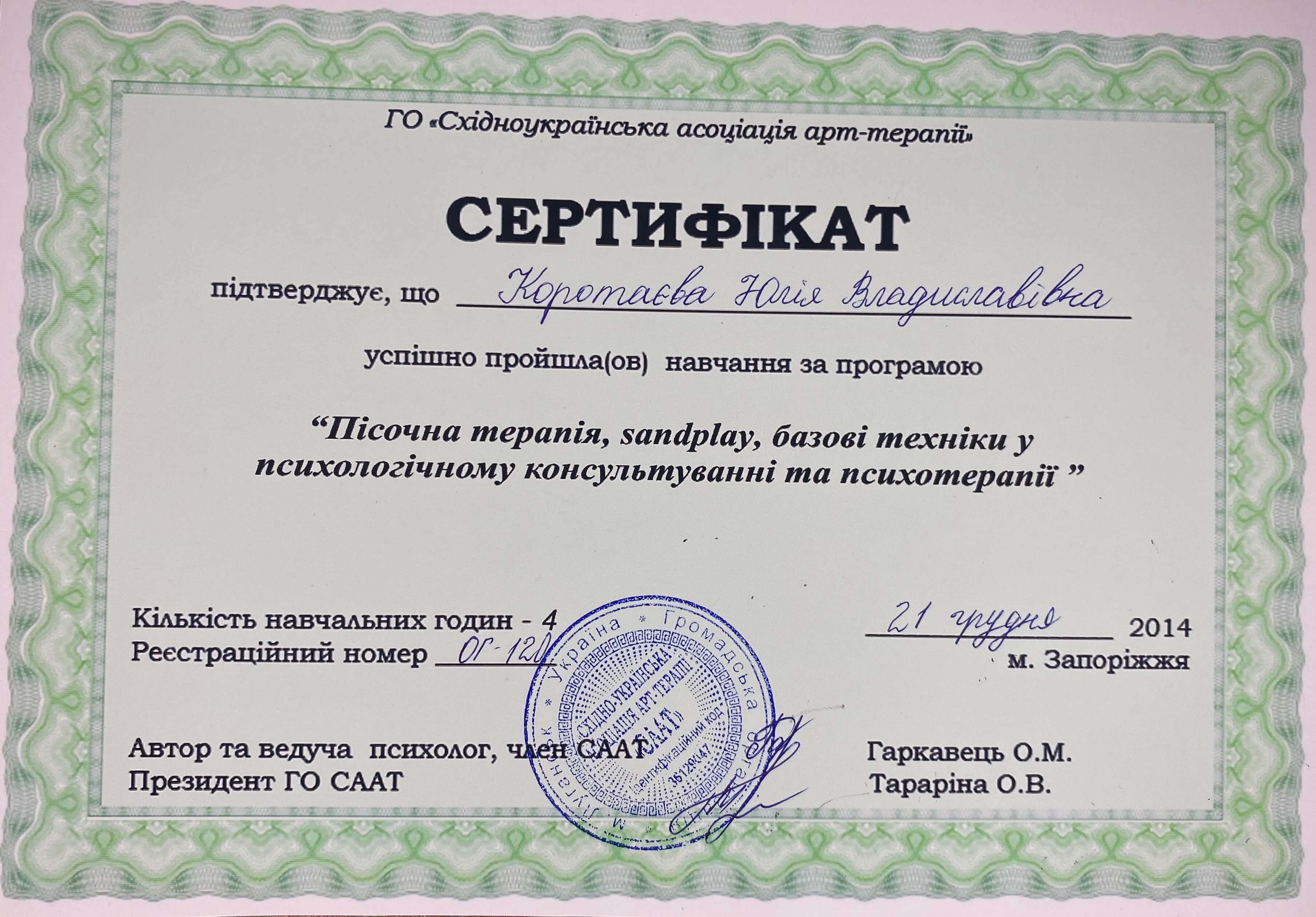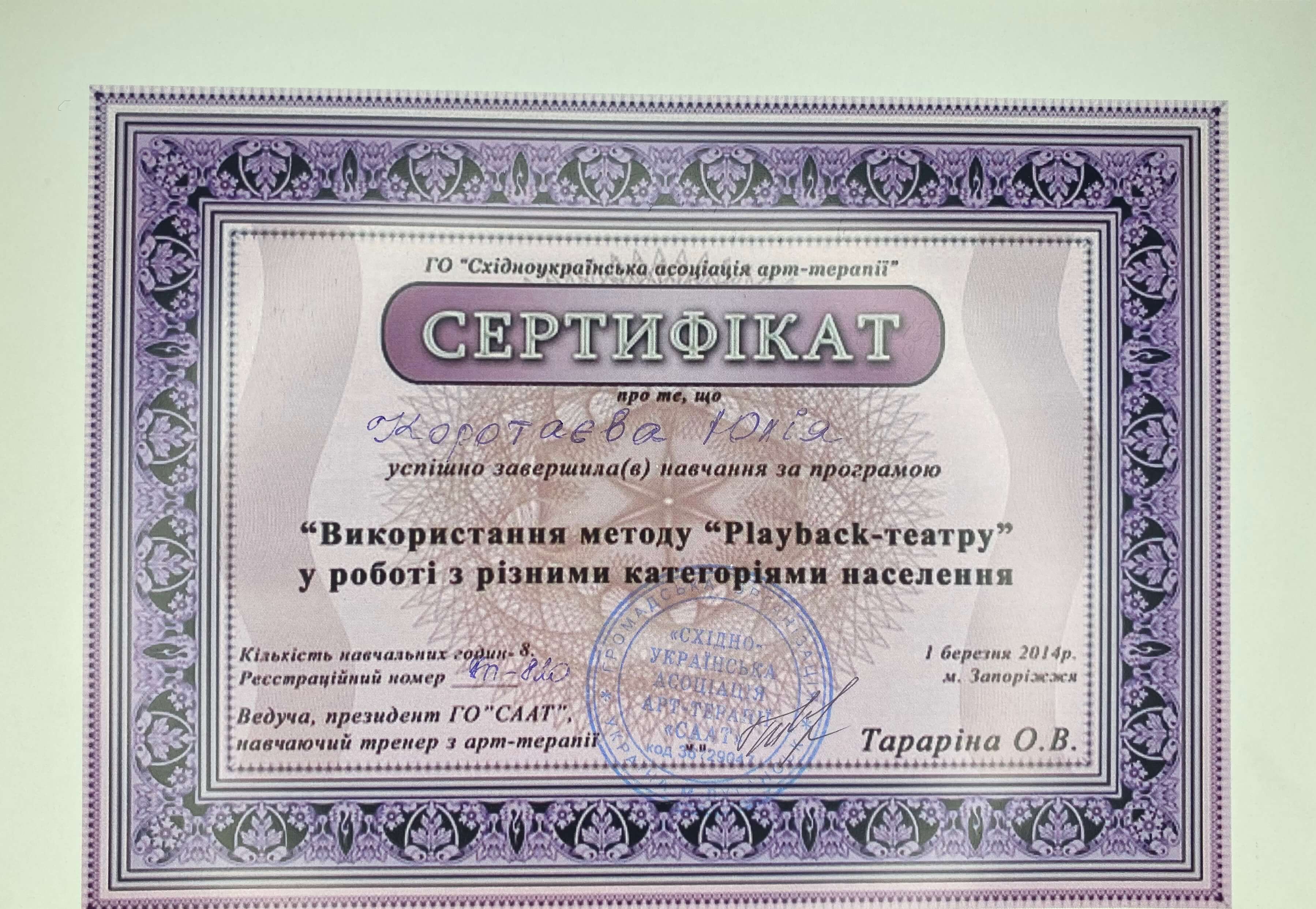 Сертифікати: