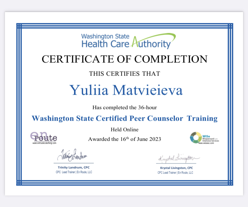 Washington State Certified Peer Counselor Training