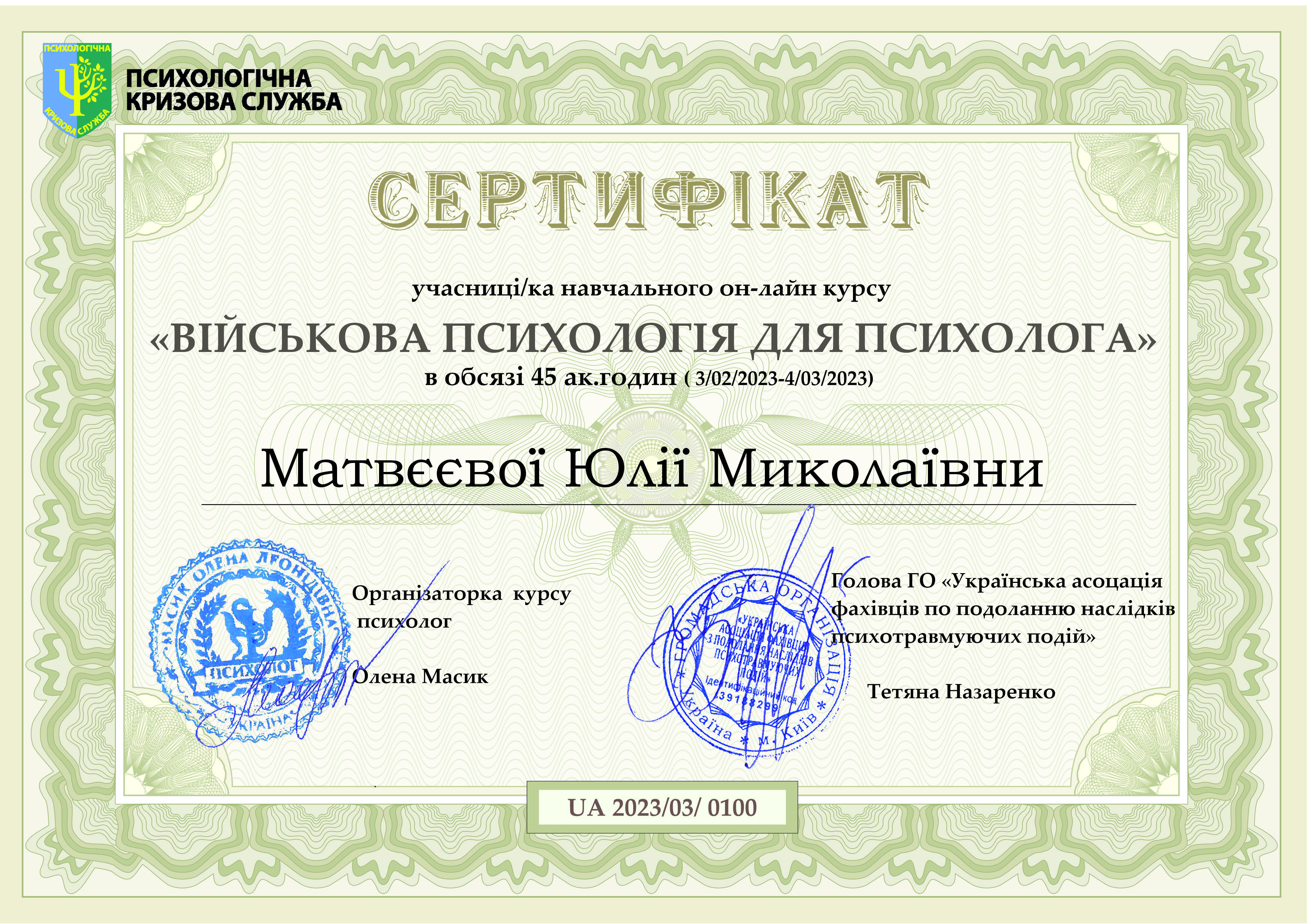 Я поєдную знання психології і досвід в медичній сфері, щоб створити безпечний простір для клієнта на шляху до зцілення і зростання.