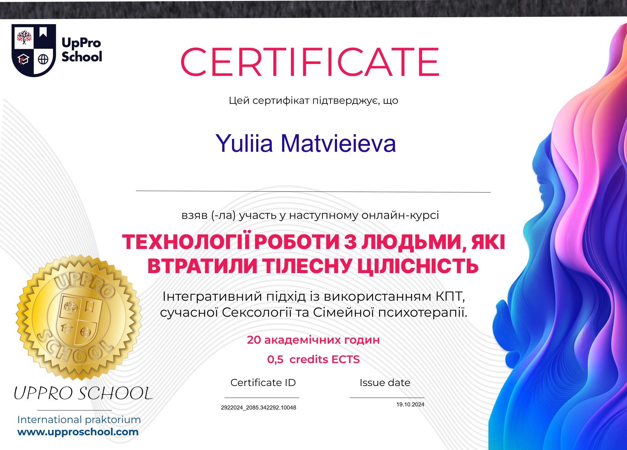 Свою роботу базую на етичних принципах і постійному професійному розвитку.