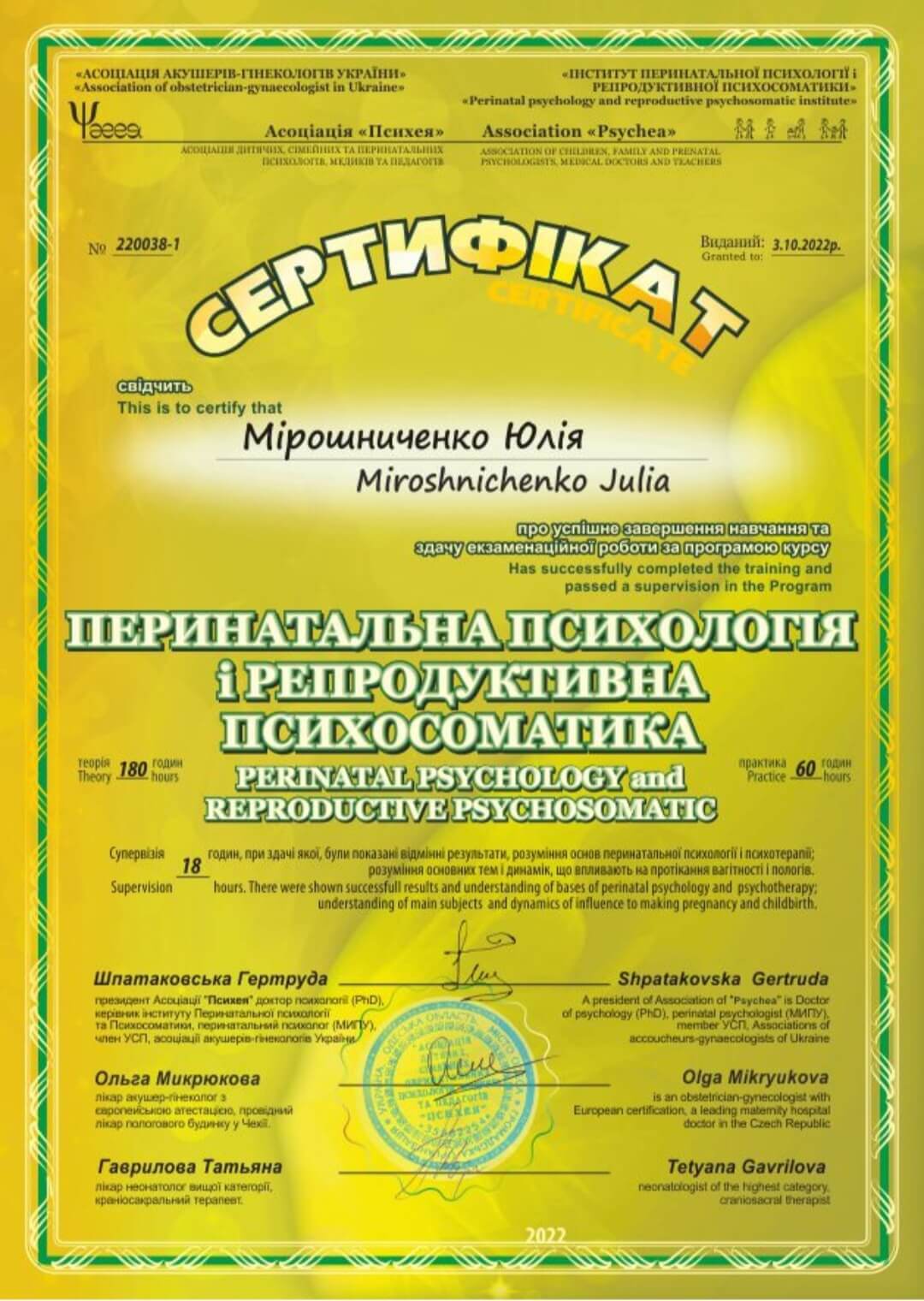 2. Перинатальний психолог, Інститут перинатальної психології та репродуктивної психосоматики, 2022