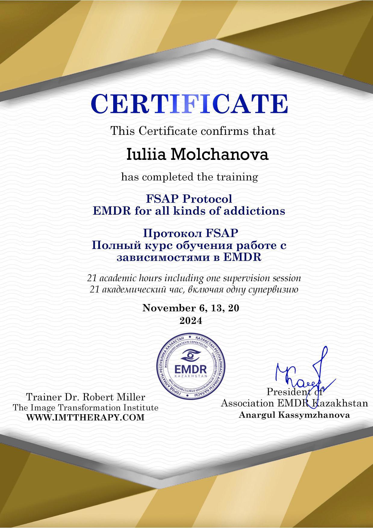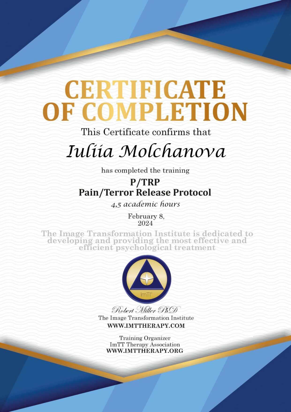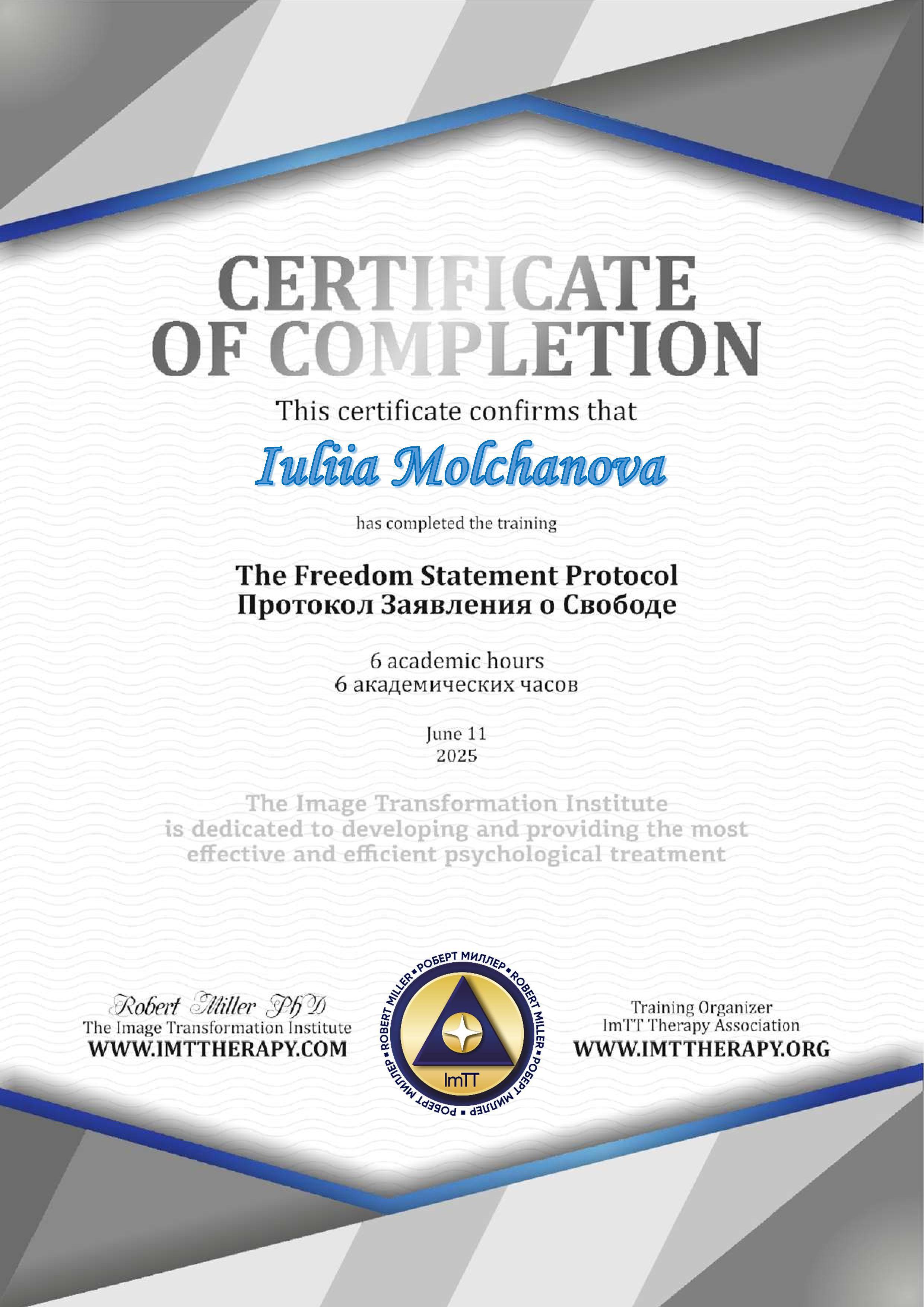 - ImTT-терапевт (Robert Miller, USA) - швидка та екологічна робота з травматичним досвідом будь-якої давності,