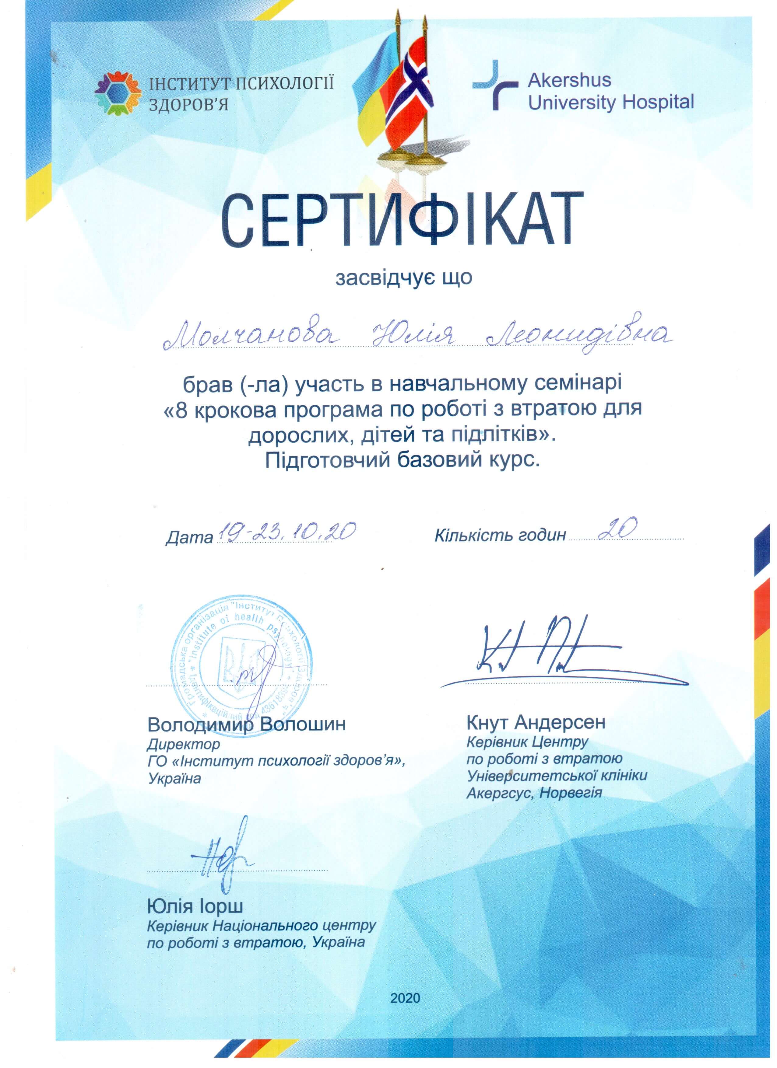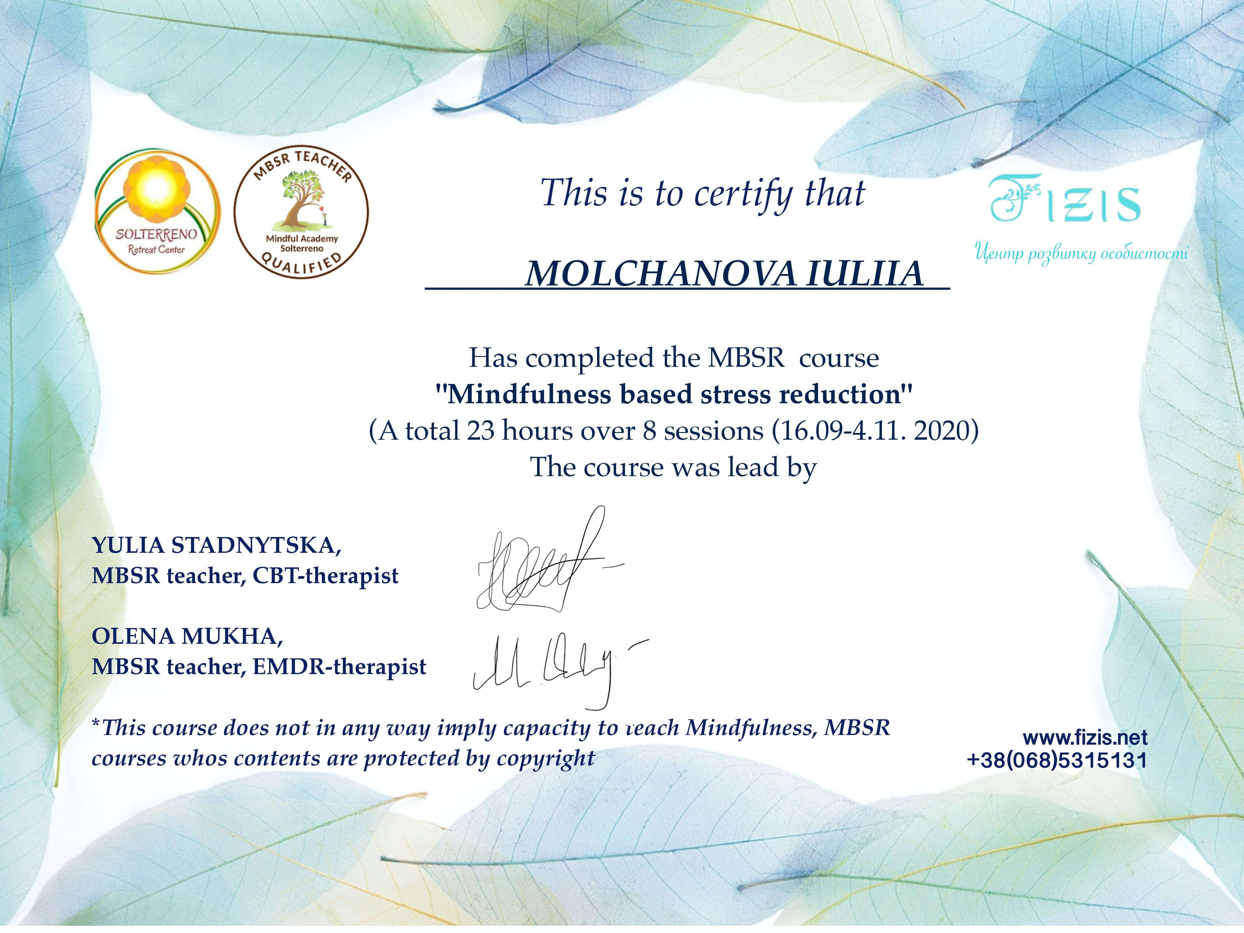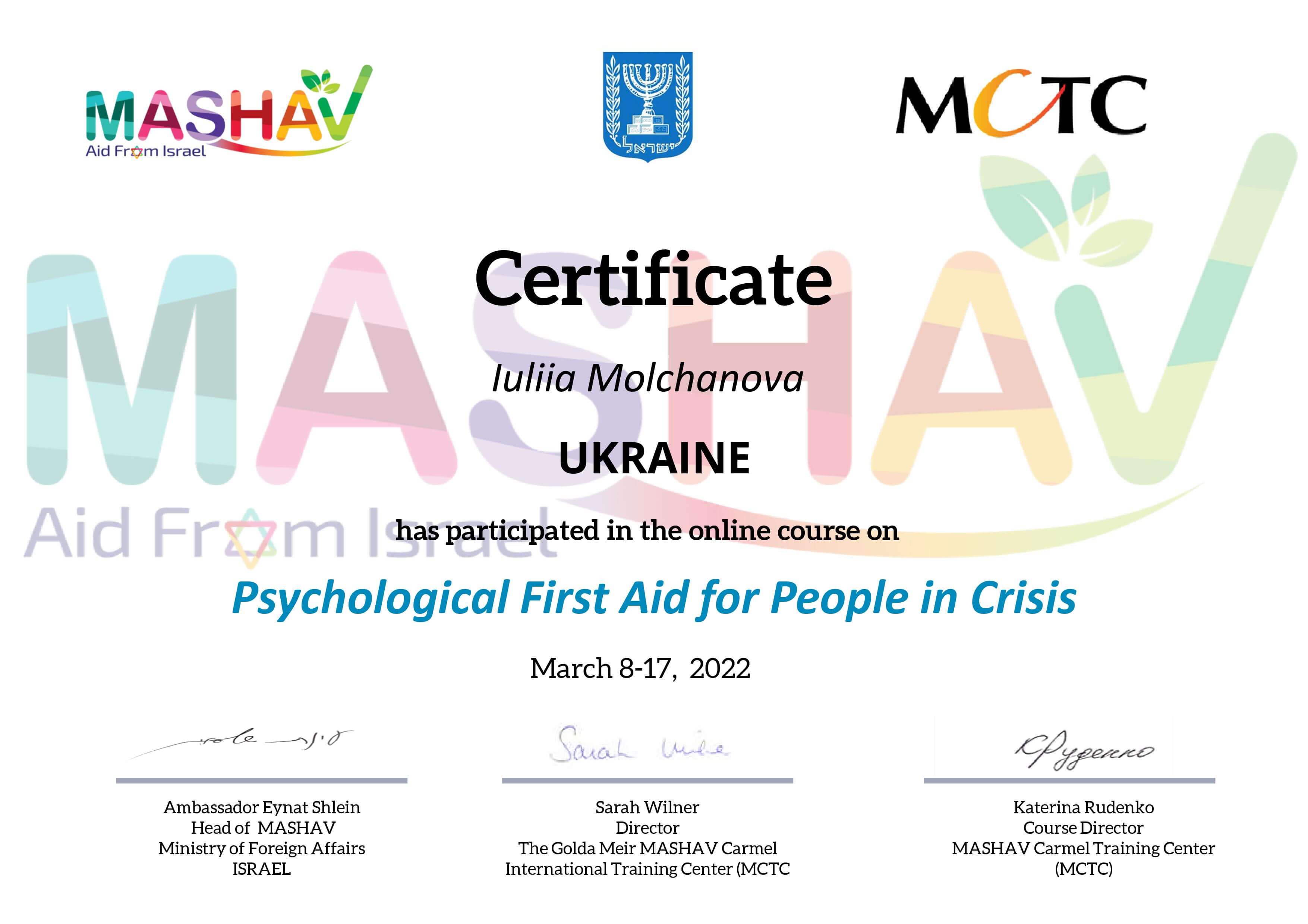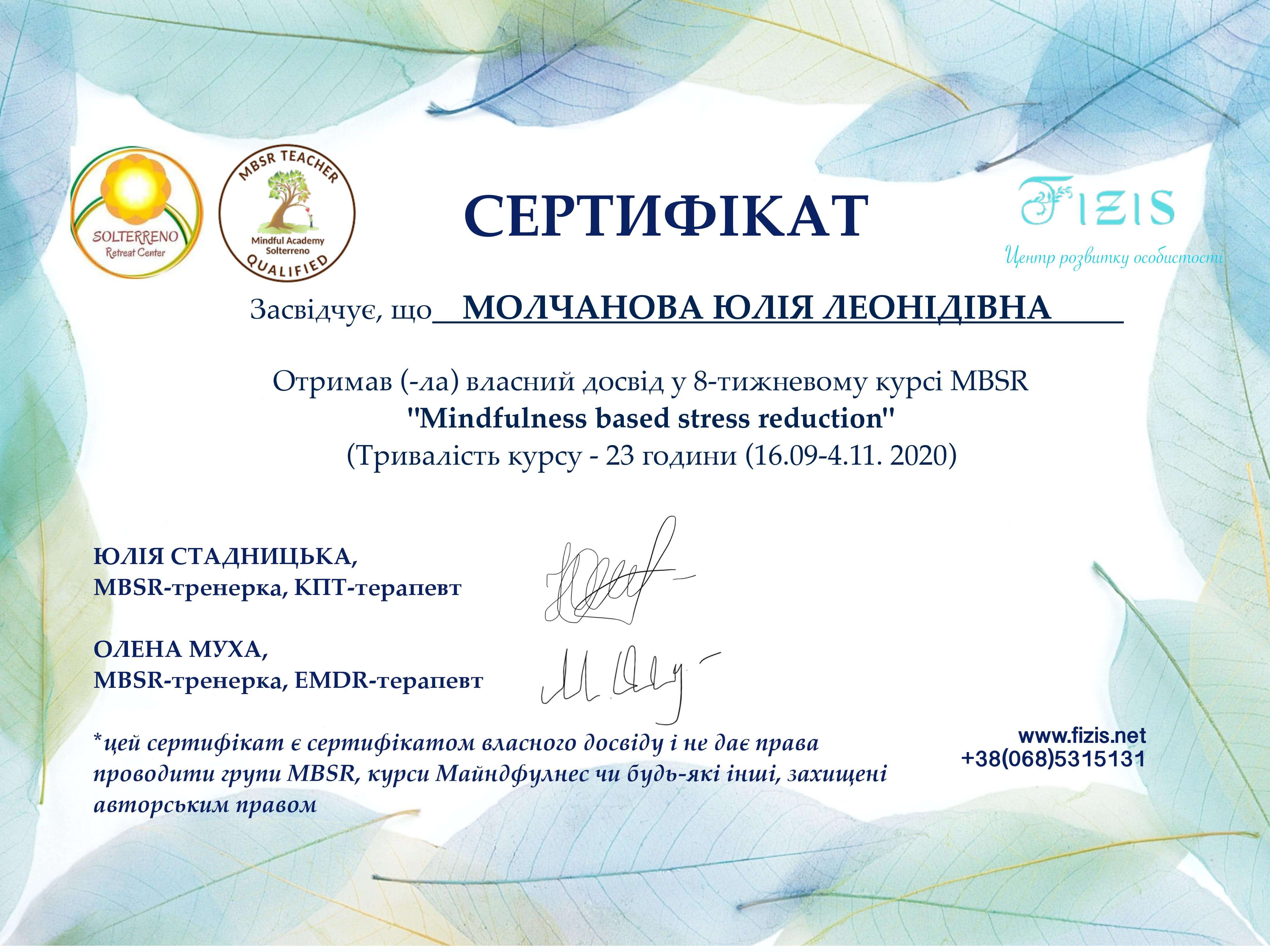 - гештальт-терапевт - Institut Français de Gestalt-thérapie, France (III ступіні)