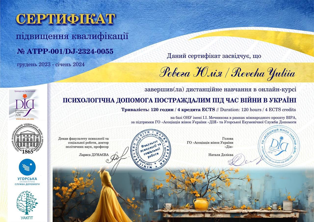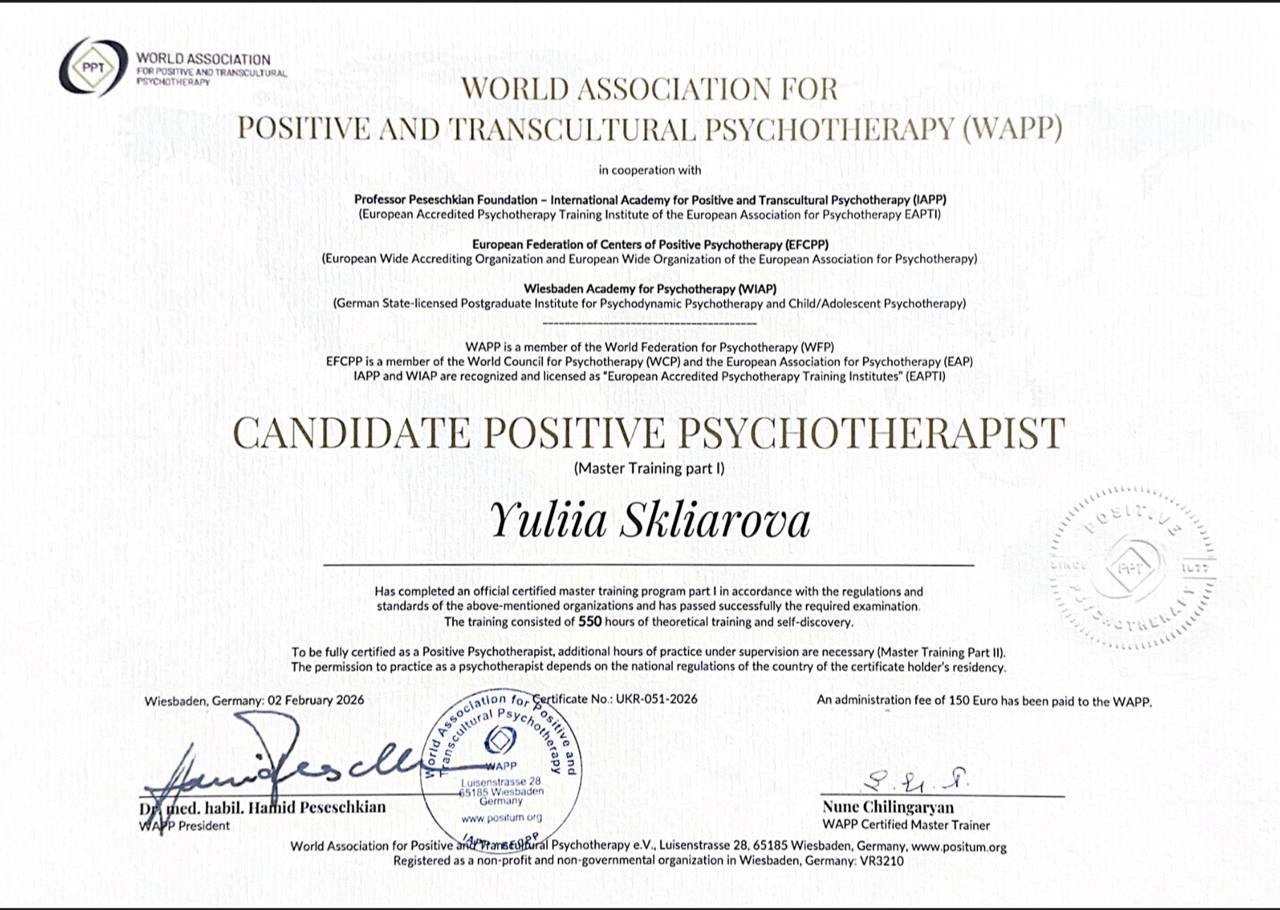 Як клієнт, я відчула, як терапія допомагає глибше зрозуміти себе, змінити оточення, будувати здорові стосунки та найважливіше це приймати людей такими, якими вони є. І навіть сьогодні я продовжую вивчати себе — це подорож, яка не має кінця, і в цьому її цінність.