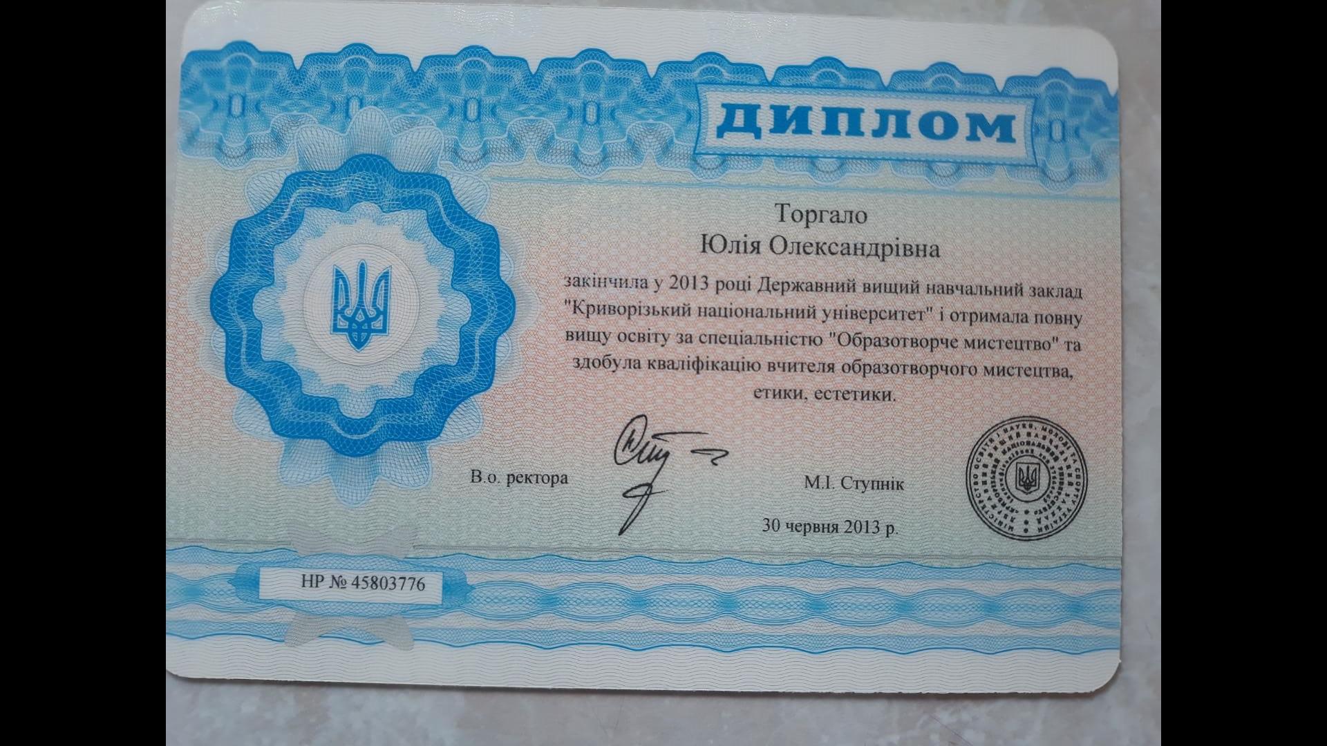 - закінчила Державний вищий навчальний заклад "Криворізький національний університет"