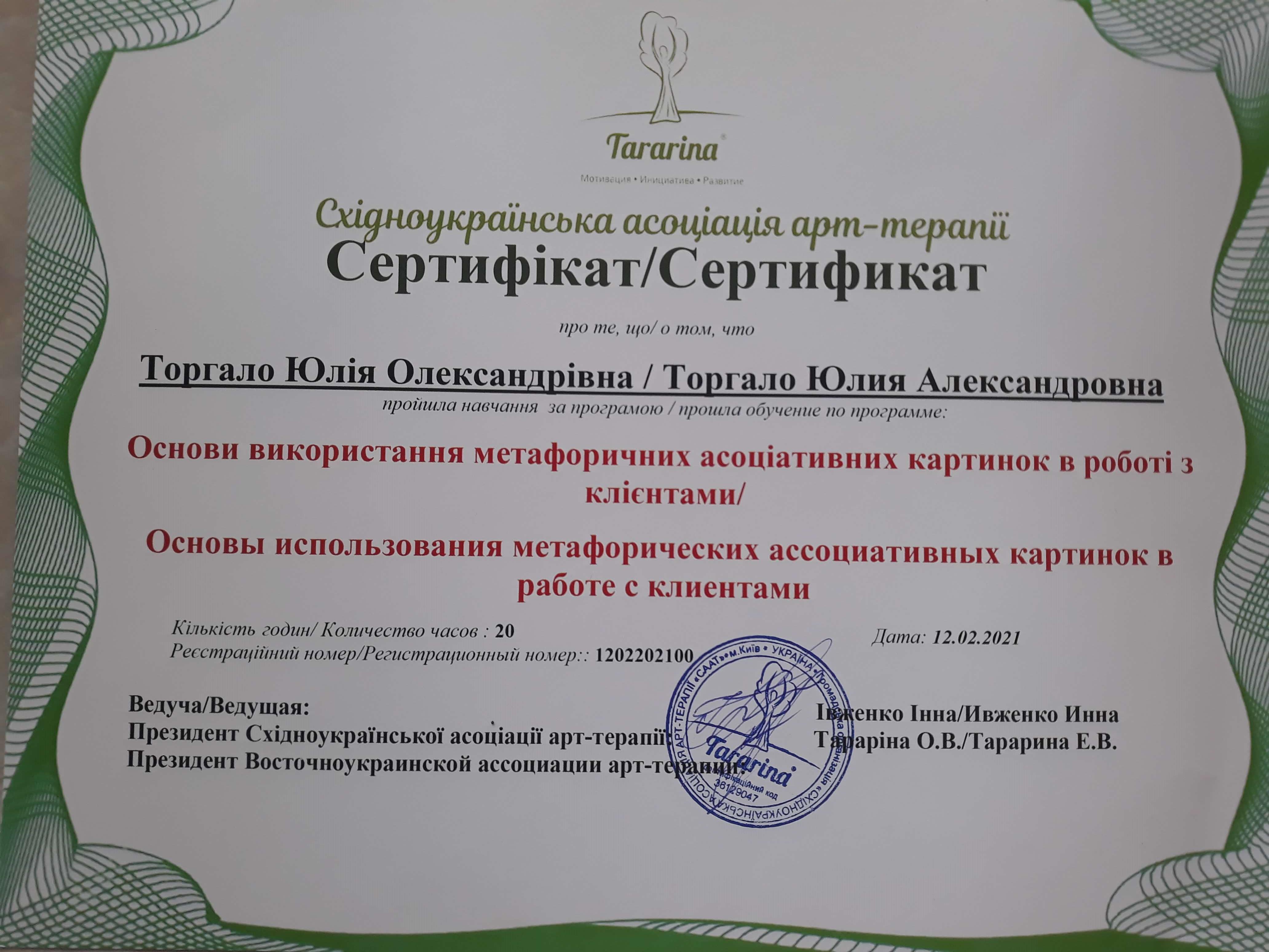 - основи використання метафоричних асоціативних картинок у роботі з клієнтами;