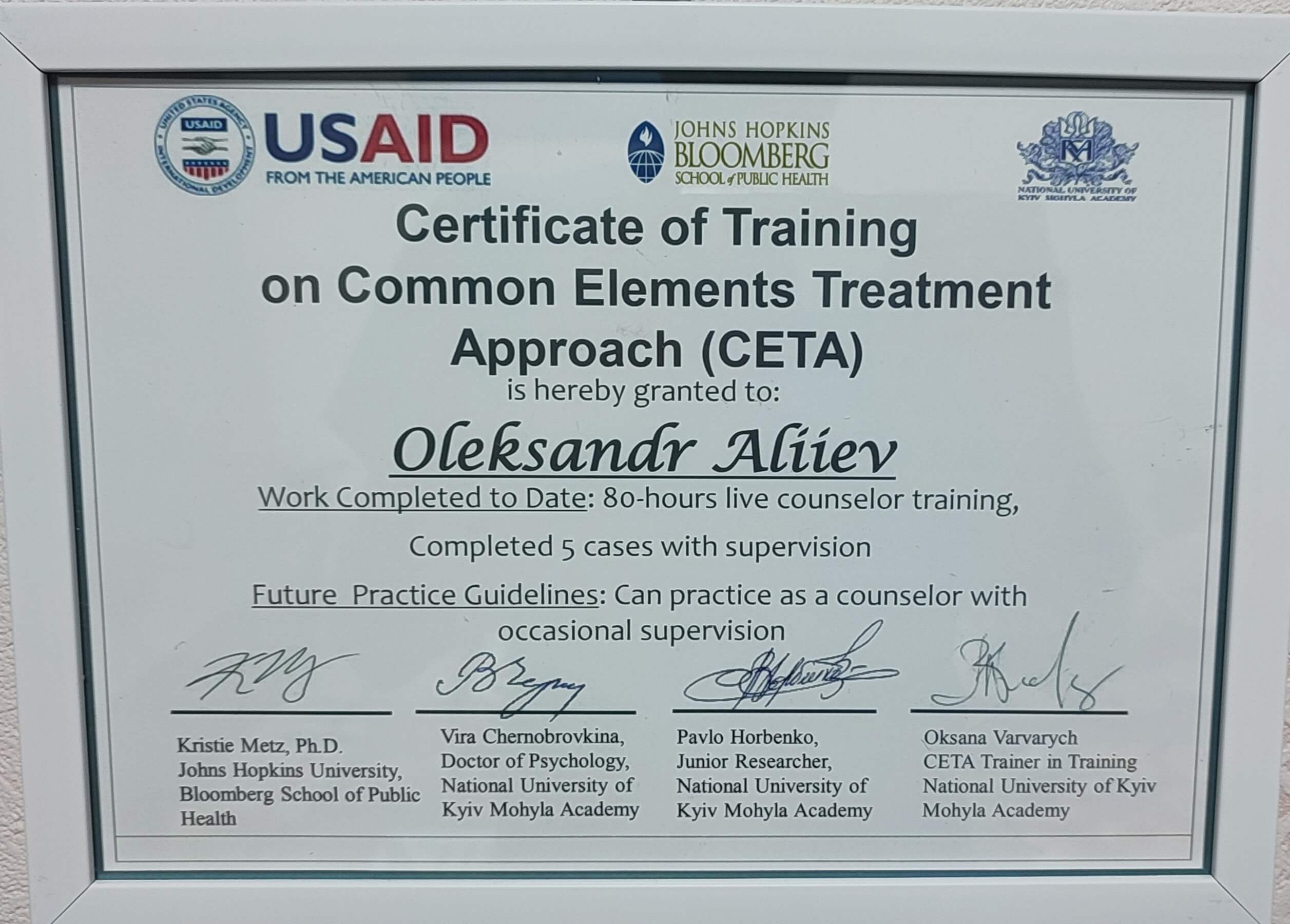 Тренер по подготовке гейткиперов - предотвращение суицидов. Кризисное консультирование. Обьединенные компоненты КПТ - программа СЕТА (Университет Джона Хопкинса). Работа с травмой, тревожностью, депрессией, употребление ПАВ.