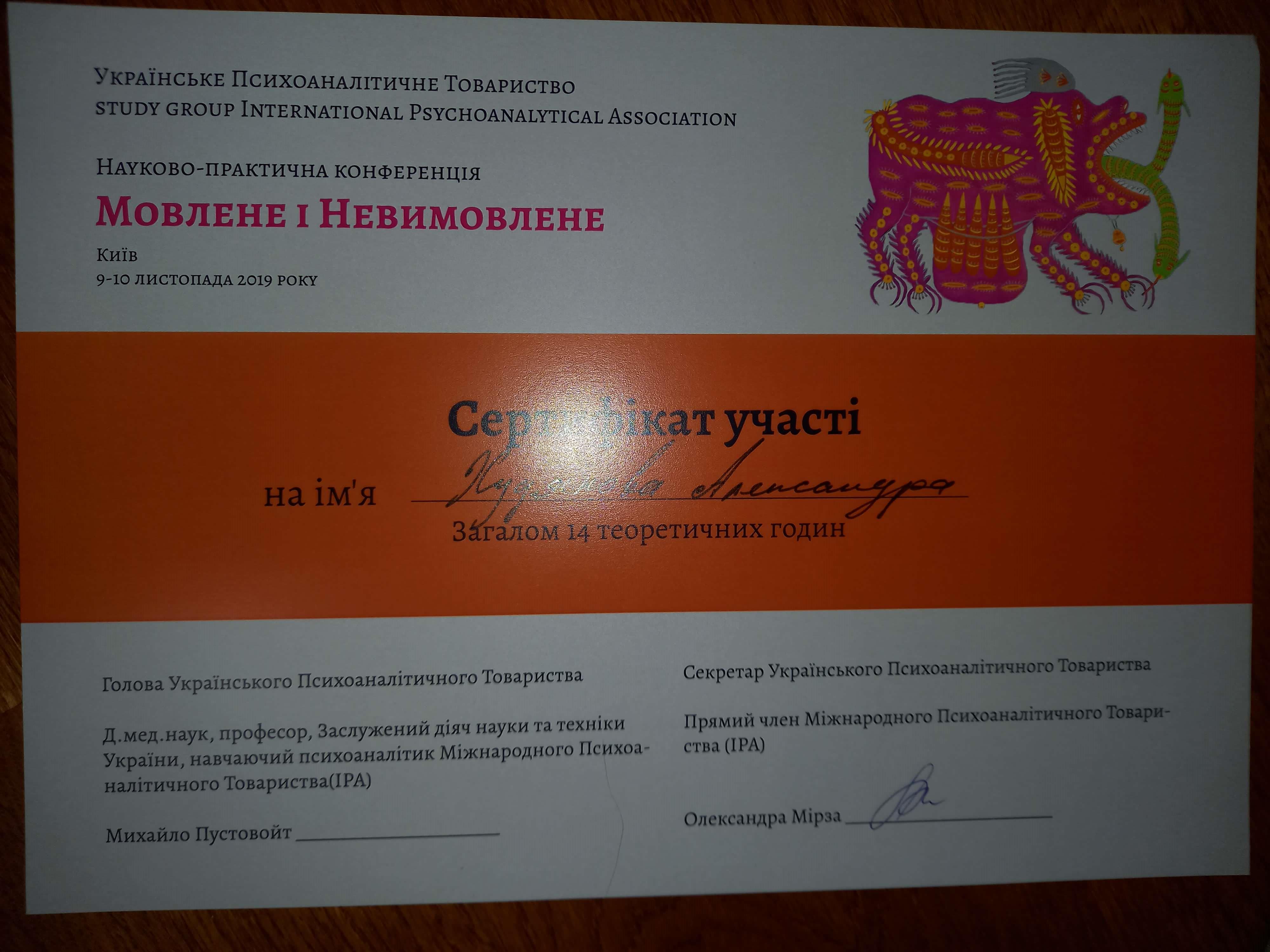 Харьковское общество психоанализа и психотерапии (ХОПП), Харьковское психоаналитическое общество (ХПО), Киевская группа членов и кандидатов IPA, БФ «Институт раннего вмешательства»