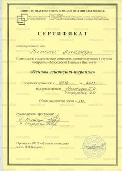 БрГУ им. Пушкина, психолого-педагогический факультет, учусь в Московском Гештальт Институте, втрая ступень, специализация "работа с "