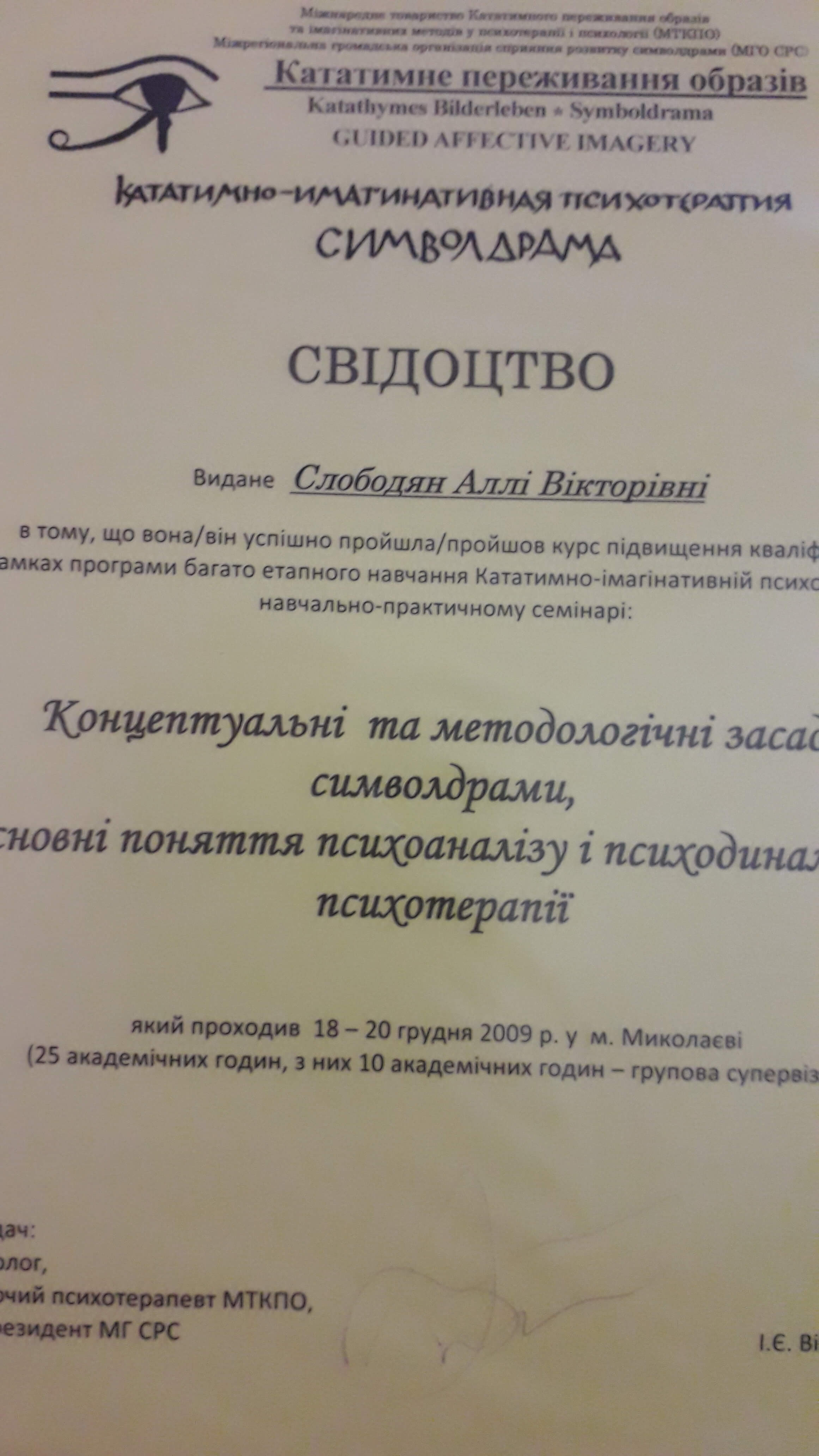 Кататимно-імагінативній психотерапії навчально-практичному семінарі: Концептуальні та методологічні засади символдрами, основні поняття психоаналізу і психодинамічної психотерапії