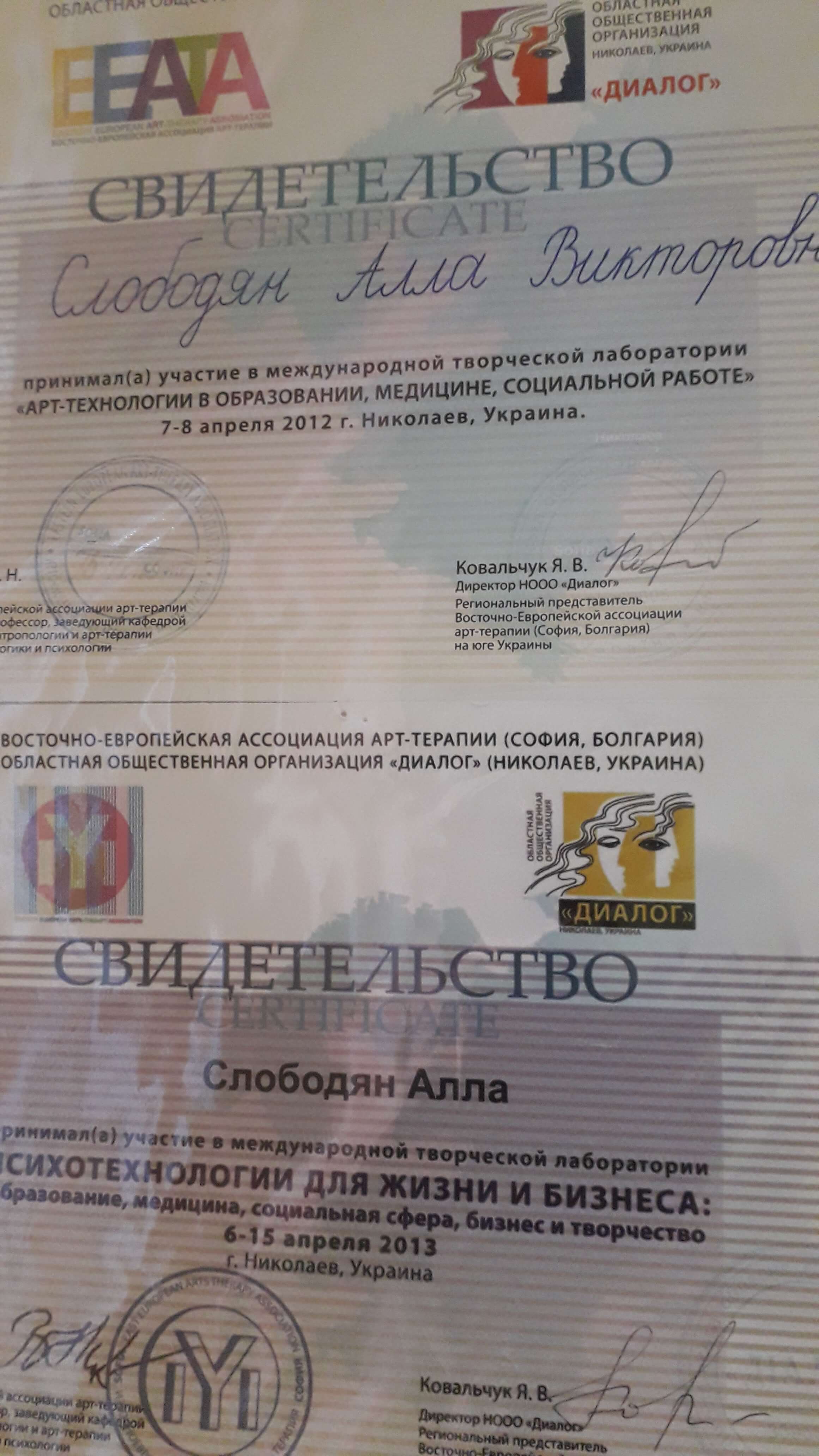 Областная общественная организация «Диалог» (Николаев, Украина); Восточно-Европейская ассоциация арт-терапии (София, Болгария)