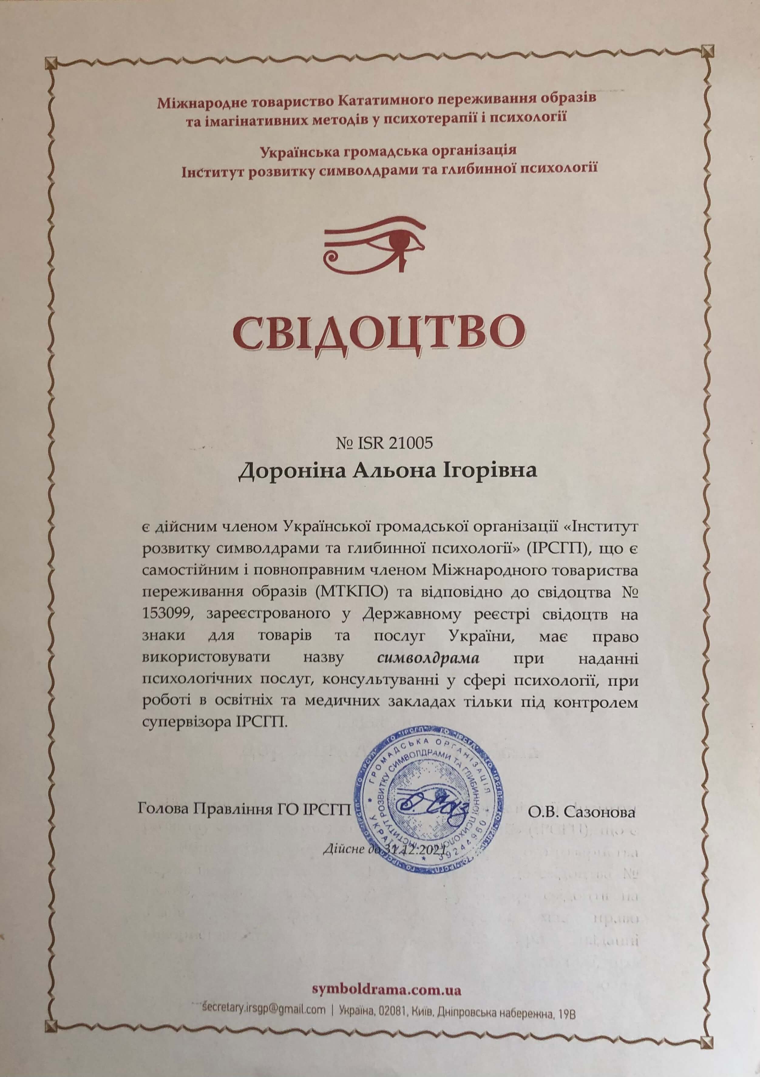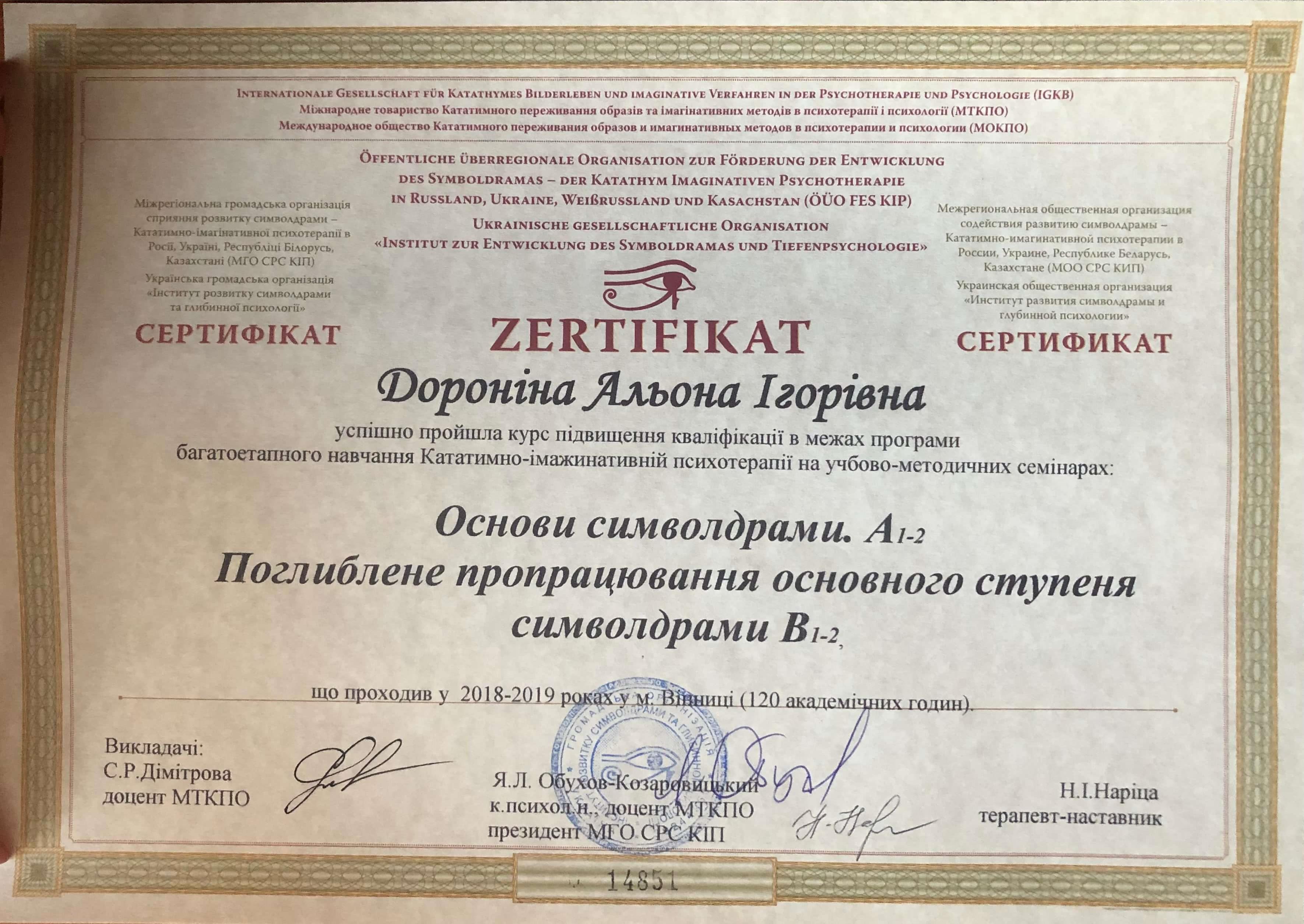 С 2018 года обучаюсь в Институте развития символдрамы и глубинной психологии - психотерапевт по методу символдрама