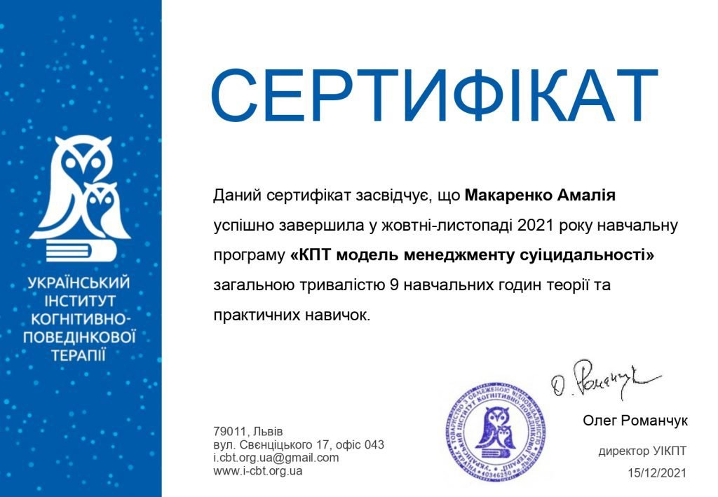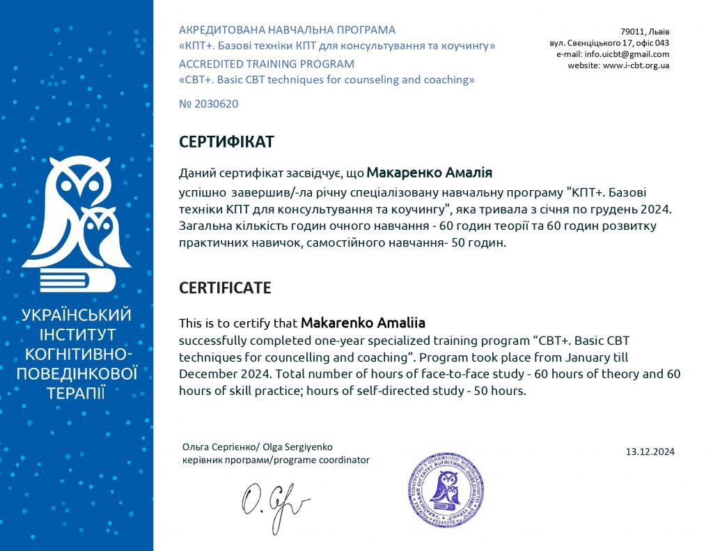 Украинский институт когнитивно-поведенческой психотерапии