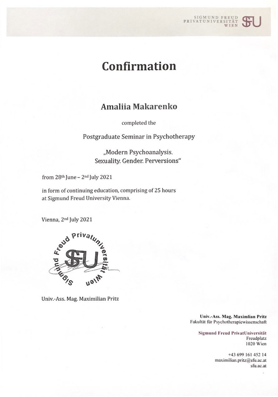 Postgraduate Seminar in Psychotherapy „Modern Psychoanalysis. Sexuality. Gender. Perversions“