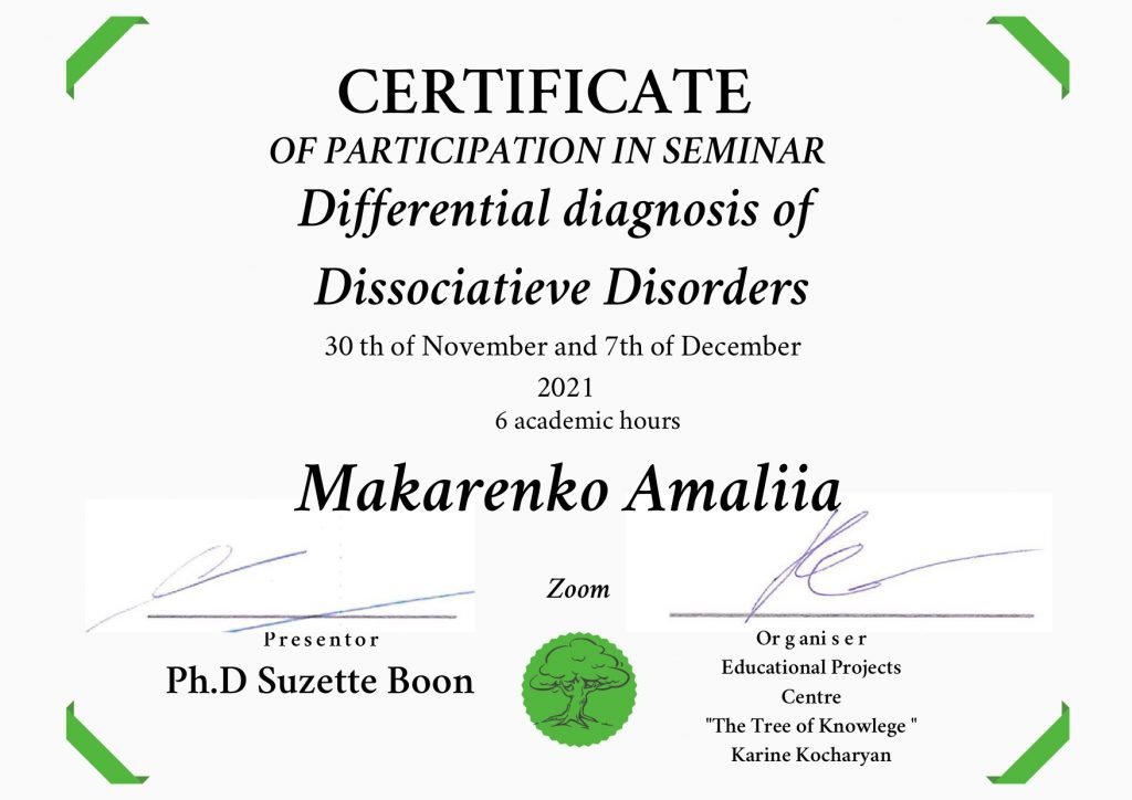Differential diagnosis of Dissociatieve Disorders