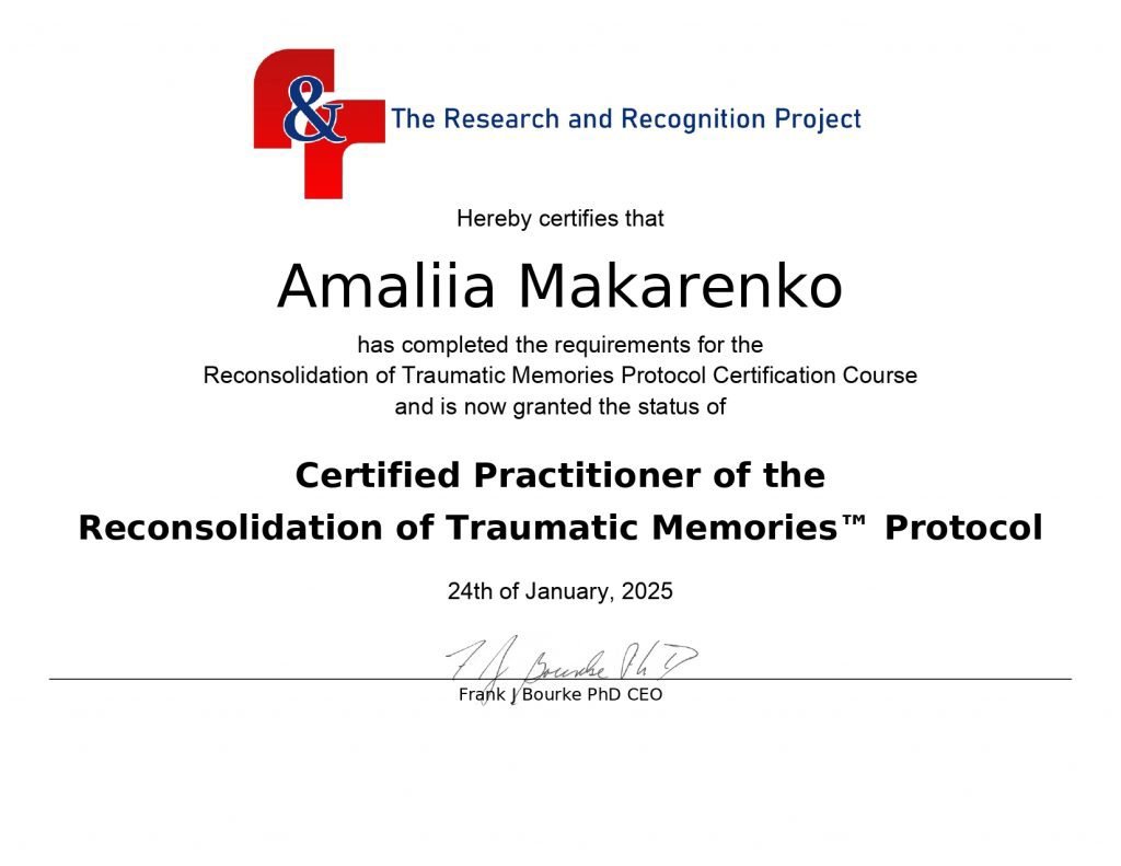 Reconsolidation of Traumatic Memories Protocol Certification Course