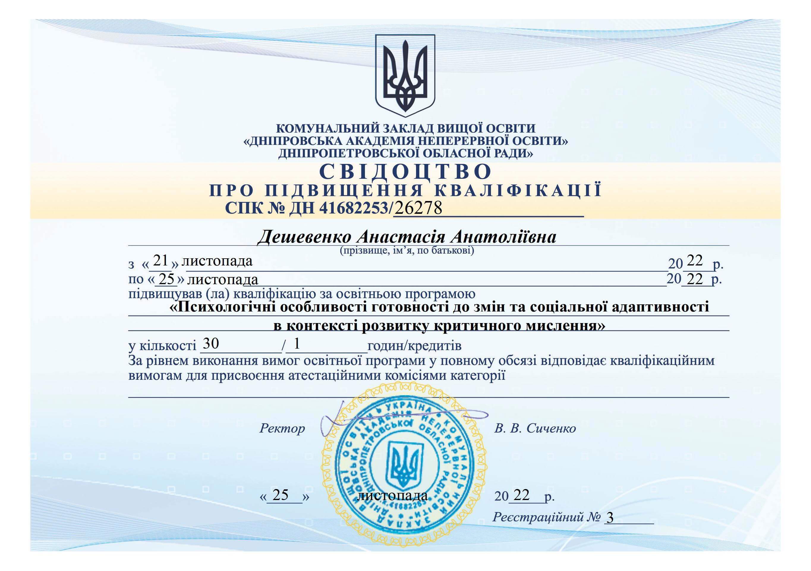 КОМУНАЛЬНИЙ ЗАКЛАД ВИЩОЇ ОСВІТИ «ДНІПРОВСЬКА АКАДЕМІЯ НЕПЕРЕРВНОЇ ОСВІТИ» ДНІПРОПЕТРОВСЬКОЇ ОБЛАСНОЇ РАДИ