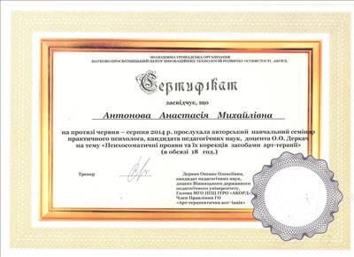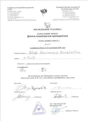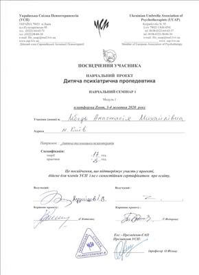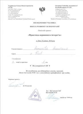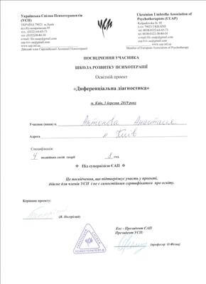 Украинский психотерапевтический университет. Психоаналитический психотерапевт.
