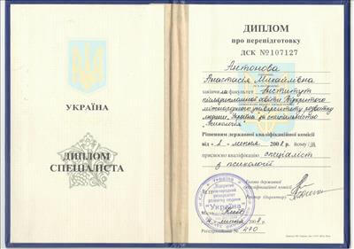 Открыт международный университет развития человека "Украина". Квалификация: Психолог. Преподаватель высшего учебного заведения.