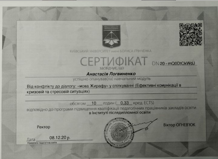 - От конфликта к диалогу: язык жирафа в общении (эффективная коммуникация в кризисной и стрессовой ситуации).10 часов, 2020 год.