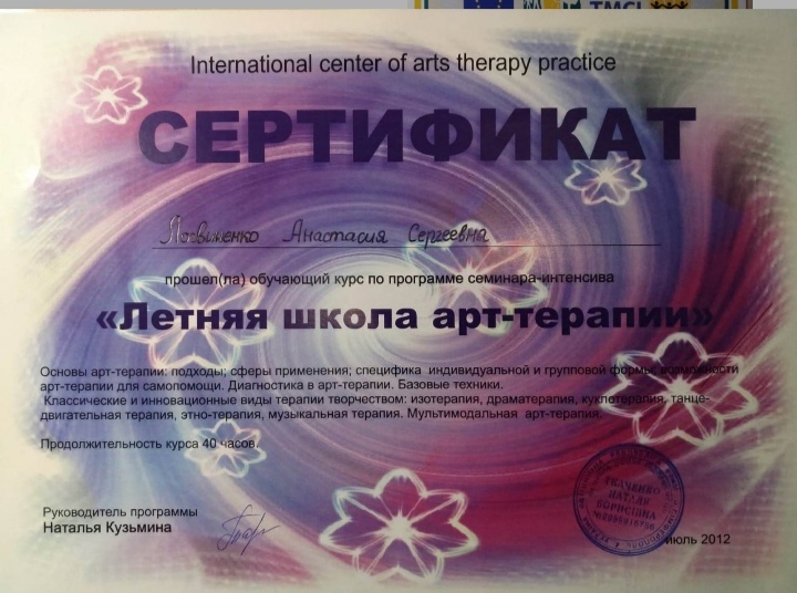 - летняя школа арт-терапии. 40 часов, 2012 г.