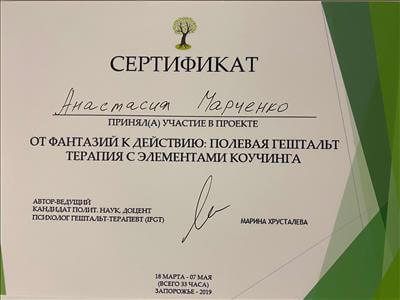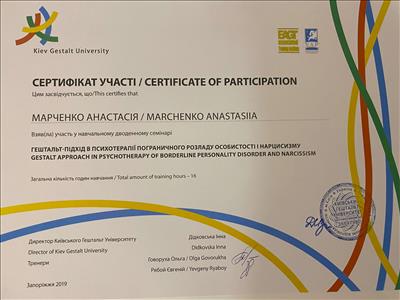 Классический приватный университет, Киевский Гештальт университет (обучение на 2 ступени) Арт-терапия в семейном консультировании, Арт-терапия в работе с детьми и подростками, Биосуггестивная терапия, Работа с телом в психотерапии, Psy2.0 психосоматика