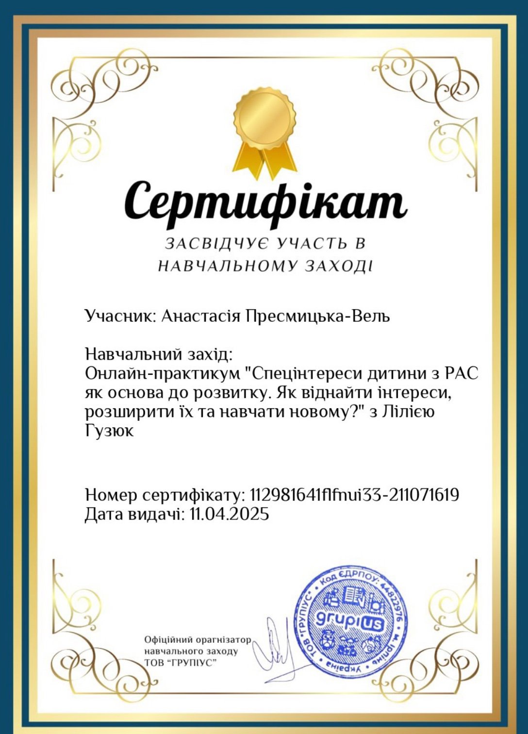 Онлайн-практикум "Спецінтереси дитини з РАС як основа до розвитку. Як віднайти інтереси, розширити їх та навчати новому?” з Лілією Гузюк