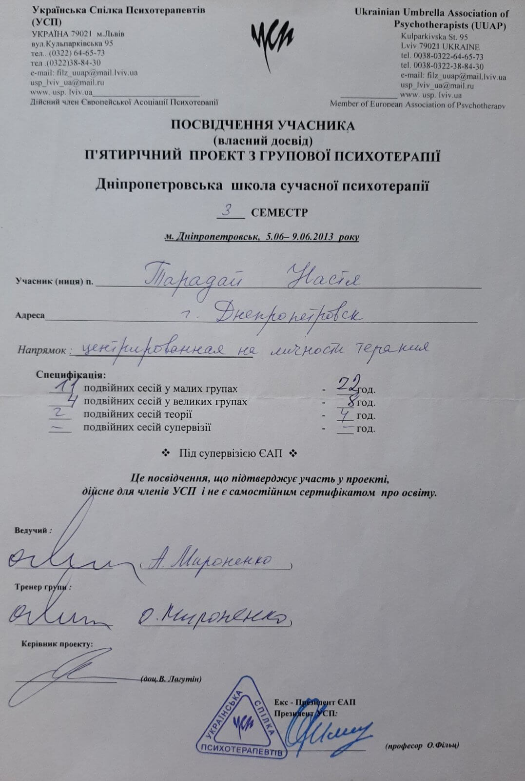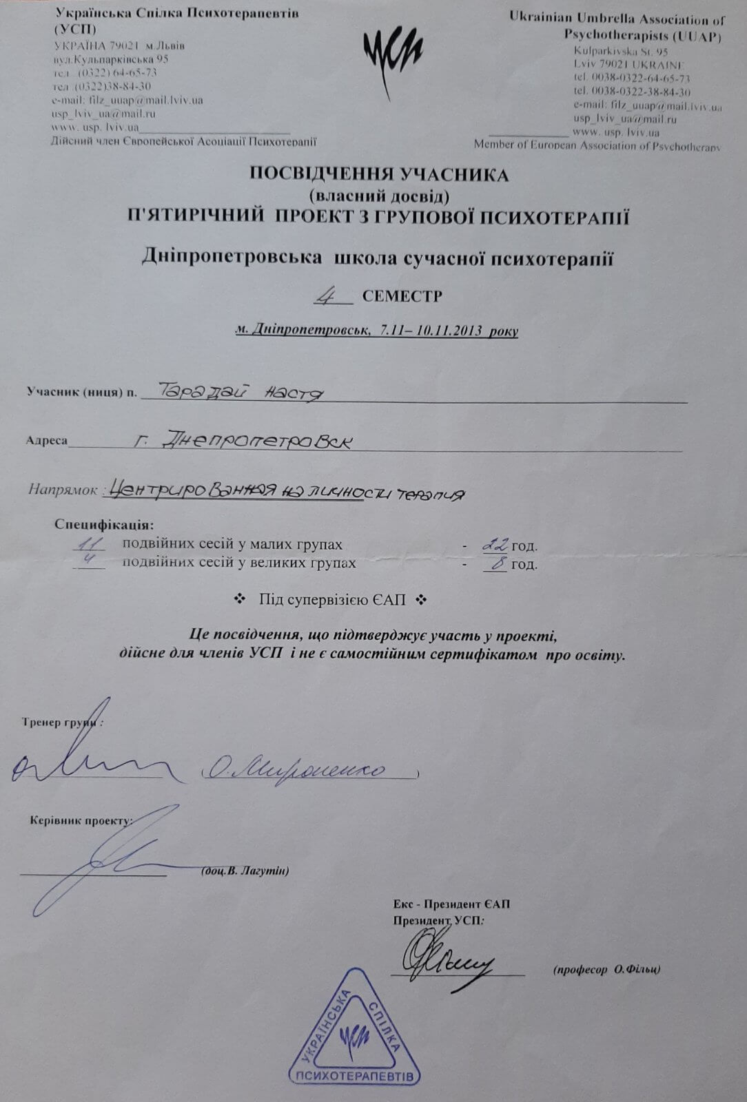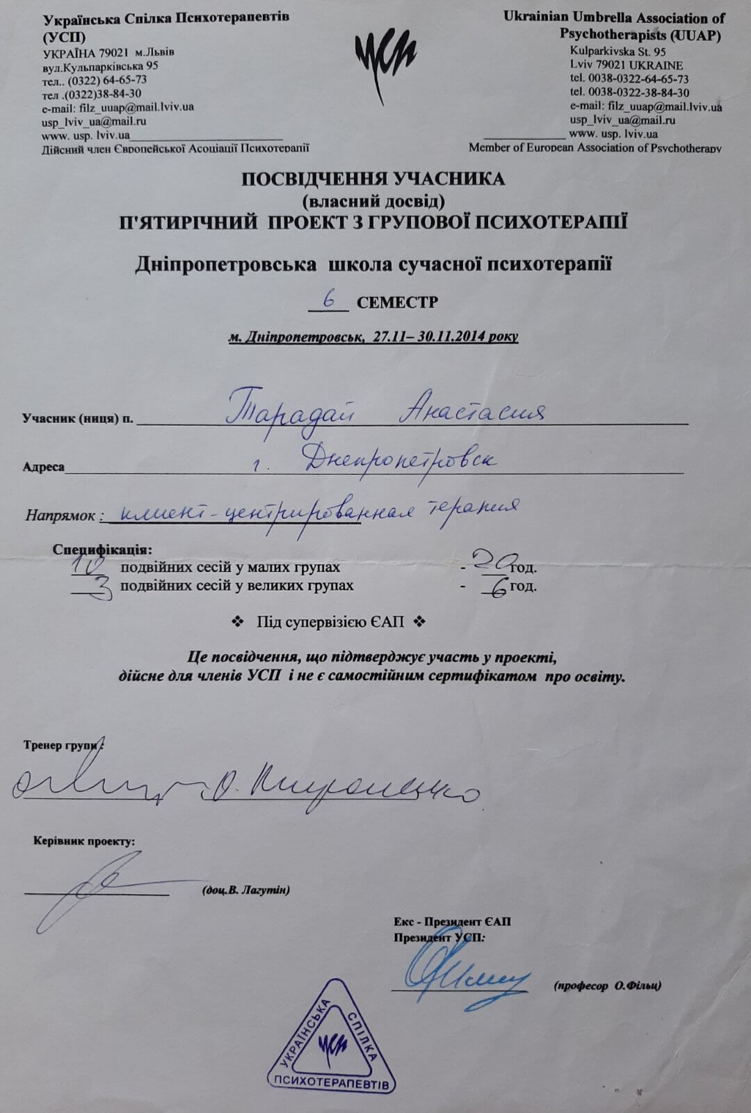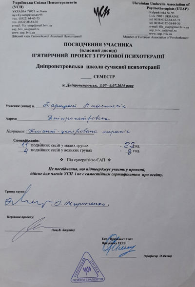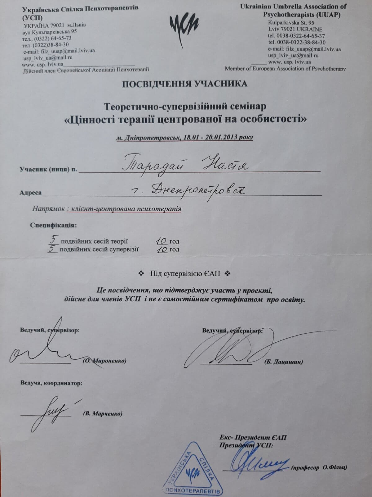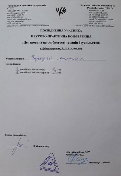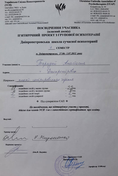 Дополнительное психотерапевтическое образование - Украинский союз психотерапевтов, Клиент-центрированная психотерапия (по К. Роджерсу), Психотерапевт.